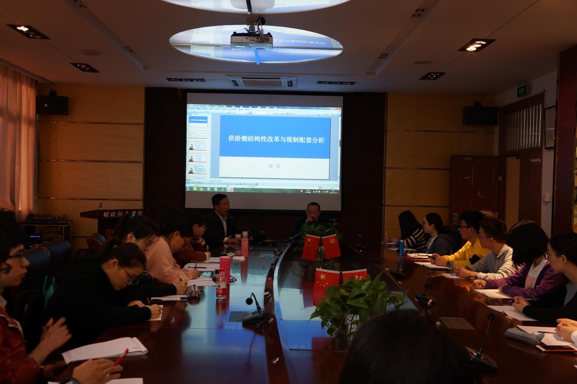 1号楼307会议室做了一场主题为“供给侧结构性改革与税制配套分析”的讲座,学院全体税务研究生到场聆听。