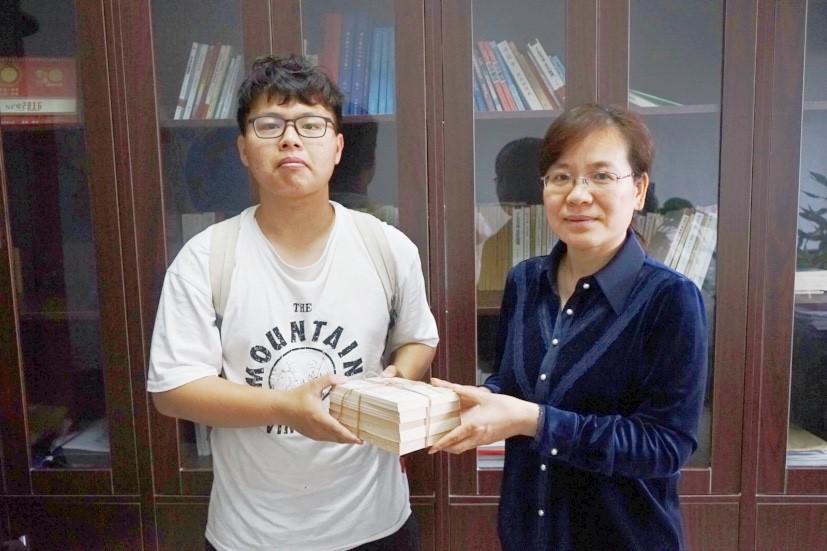 20财税4班韩忠贵同学许愿能够拥有66年和77年旧版的《毛泽东选集》。“现存的这套书非常难购买,经过多方搜寻,终于在湖南长沙一家老店找到了。希望韩同学能对毛泽东思想有更深入的思考,并从中得到智慧和力量。”财税学院党委书记童玉玲说道。