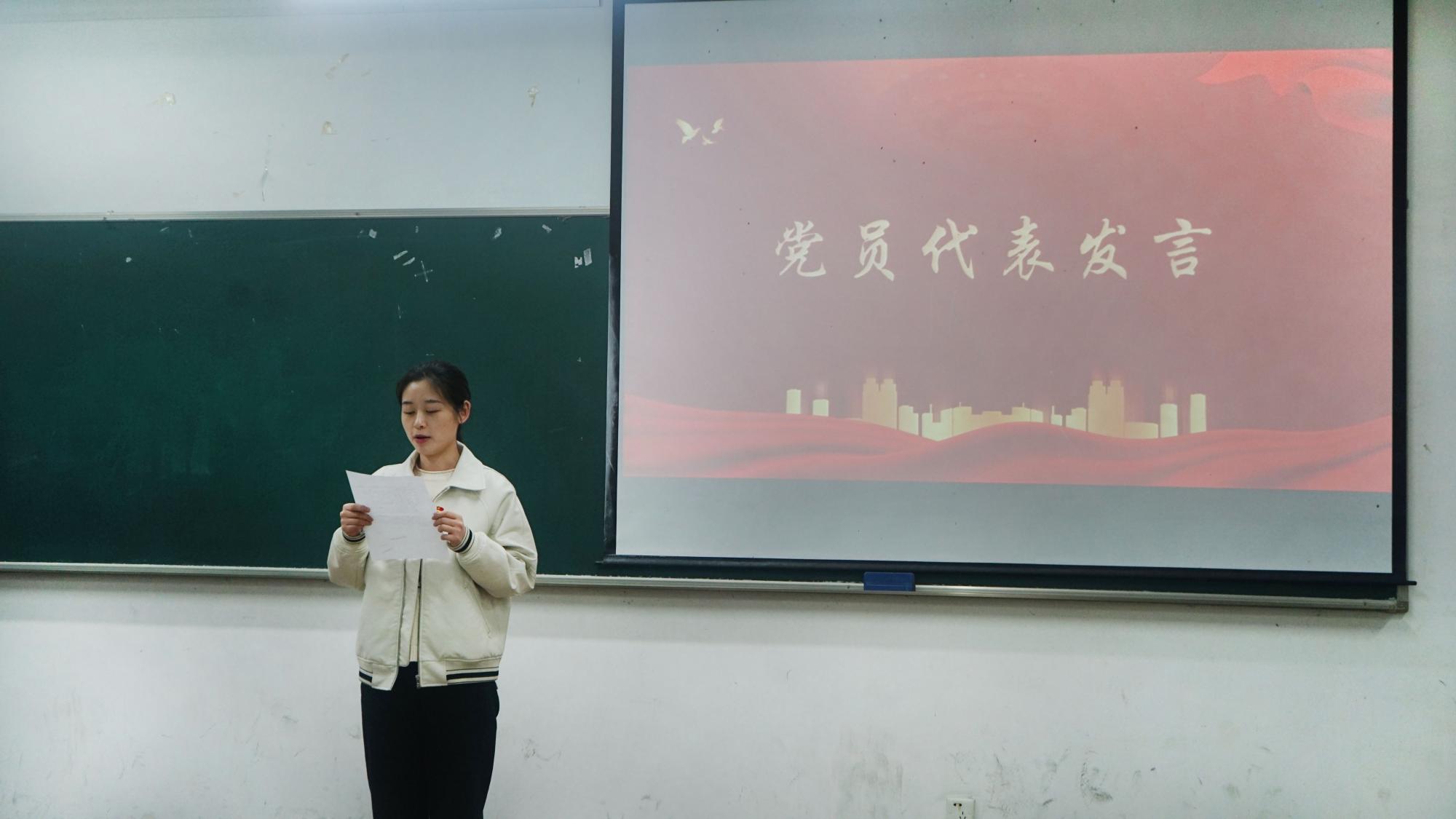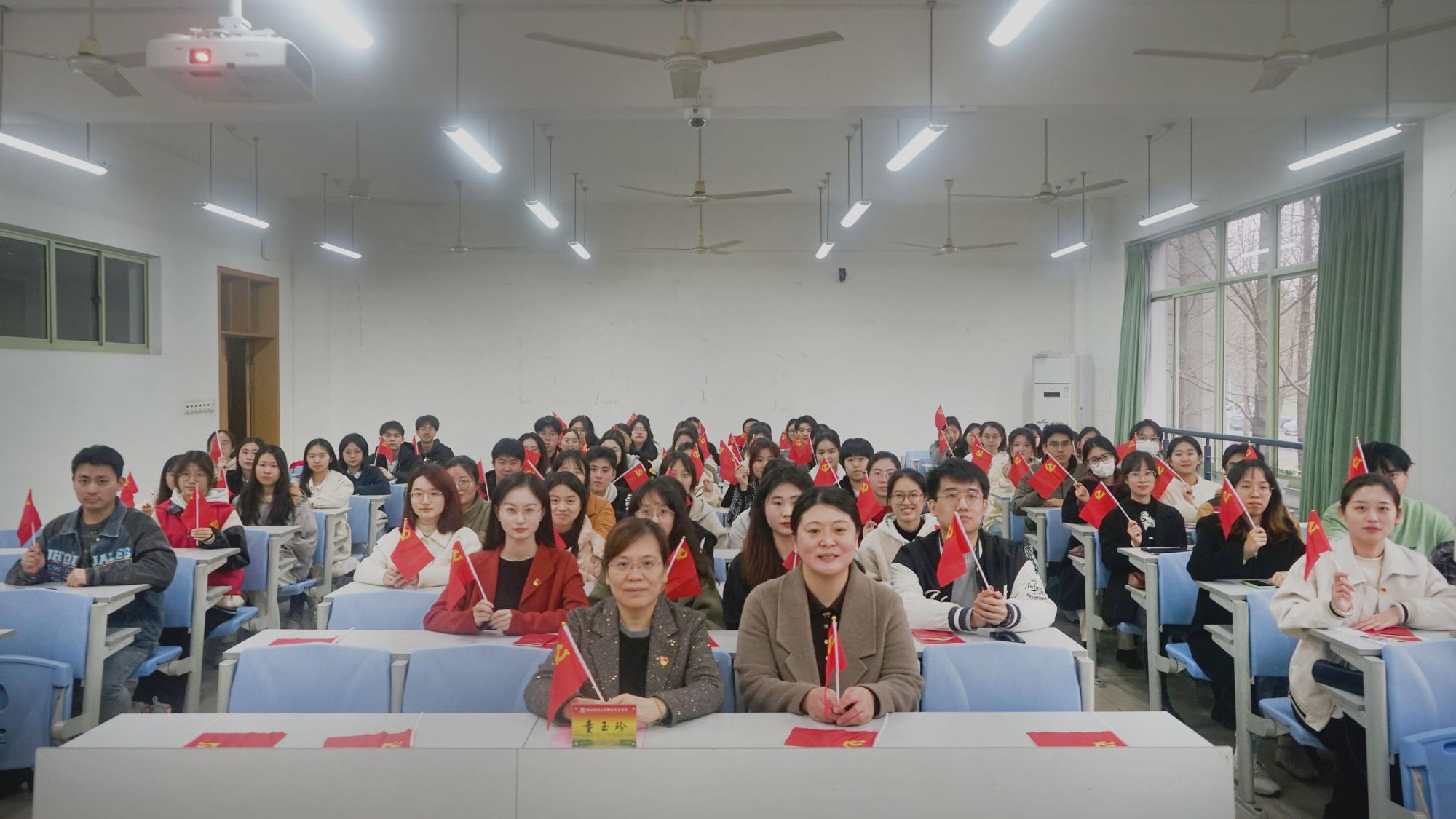 党委组织全体新党员在学院楼102教室开展新党员入党宣誓仪式。学院党委书记童玉玲,专职组织员胡卓文以及全体新党员参加本次仪式。