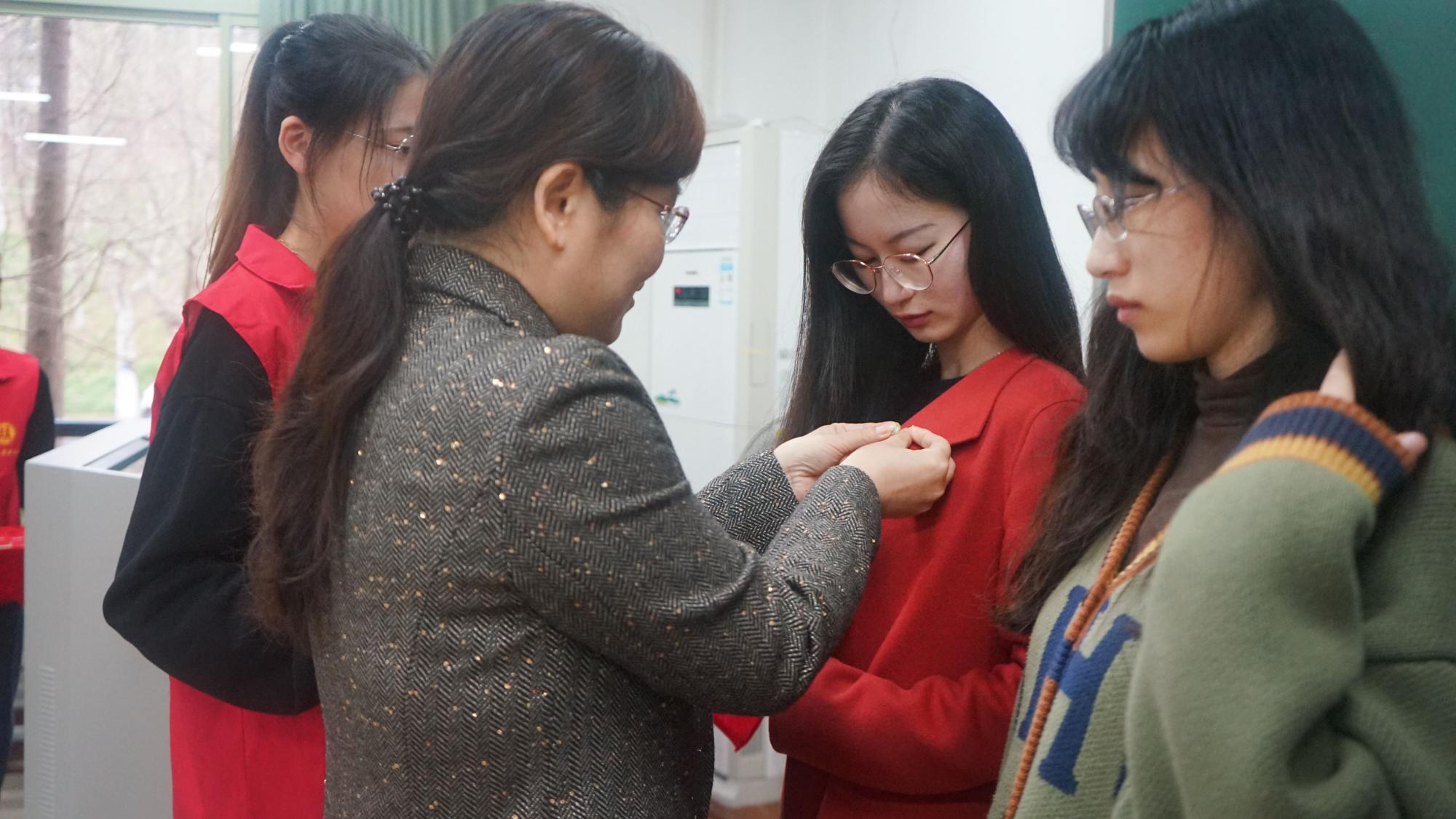 随后,童玉玲为各支部新党员代表一一佩戴党徽并发放《中国共产党章程》,胡卓文为新党员代表发放《中国共产党纪律处分条例》。