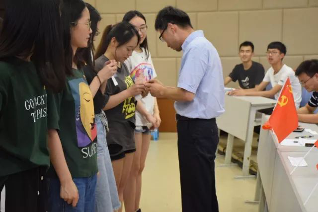 紧接着,教工党员代表李永友,童光辉,胡卓文为新发展党员佩戴了党员徽章。