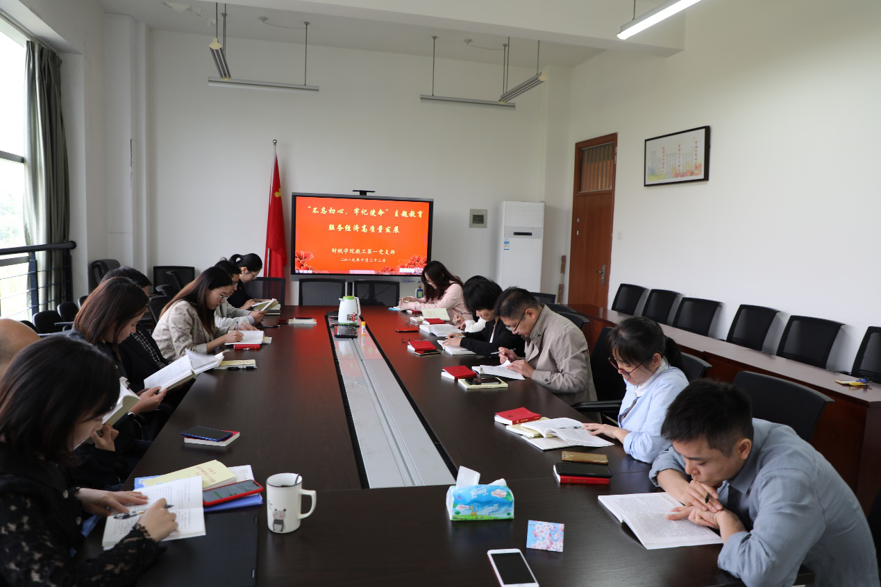 教工第一党支部开展了“不忘初心,牢记使命”主题教育系列活动,结合《习近平关于“不忘初心、牢记使命”论述摘编》《习近平新时代中国特色社会主义思想学习纲要》的学习,从专业业务视角探讨如何服务经济高质量发展,此次活动由童幼雏书记主持。