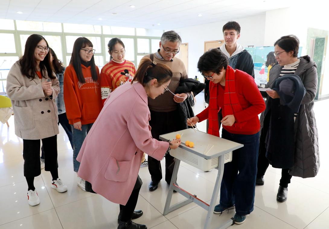 还记得那些曾给童年时光增添无限乐趣的小游戏吗?套圈、猜灯谜、射飞镖、吹蜡烛、过电网、蒙眼敲锣、水中捞棋子……12月18日,av大平台 工会举办游园活动。新年游园是av大平台 辞旧迎新的传统活动,其通过举办一系列有意义的趣味游园项目,为全院师生提供了一个娱乐健身的平台。平日呆在实验室里紧张研究和学习的师生们,此时个个喜气洋洋,生龙活虎,欢呼声、喝彩声此起彼伏,游园场面极其热烈。