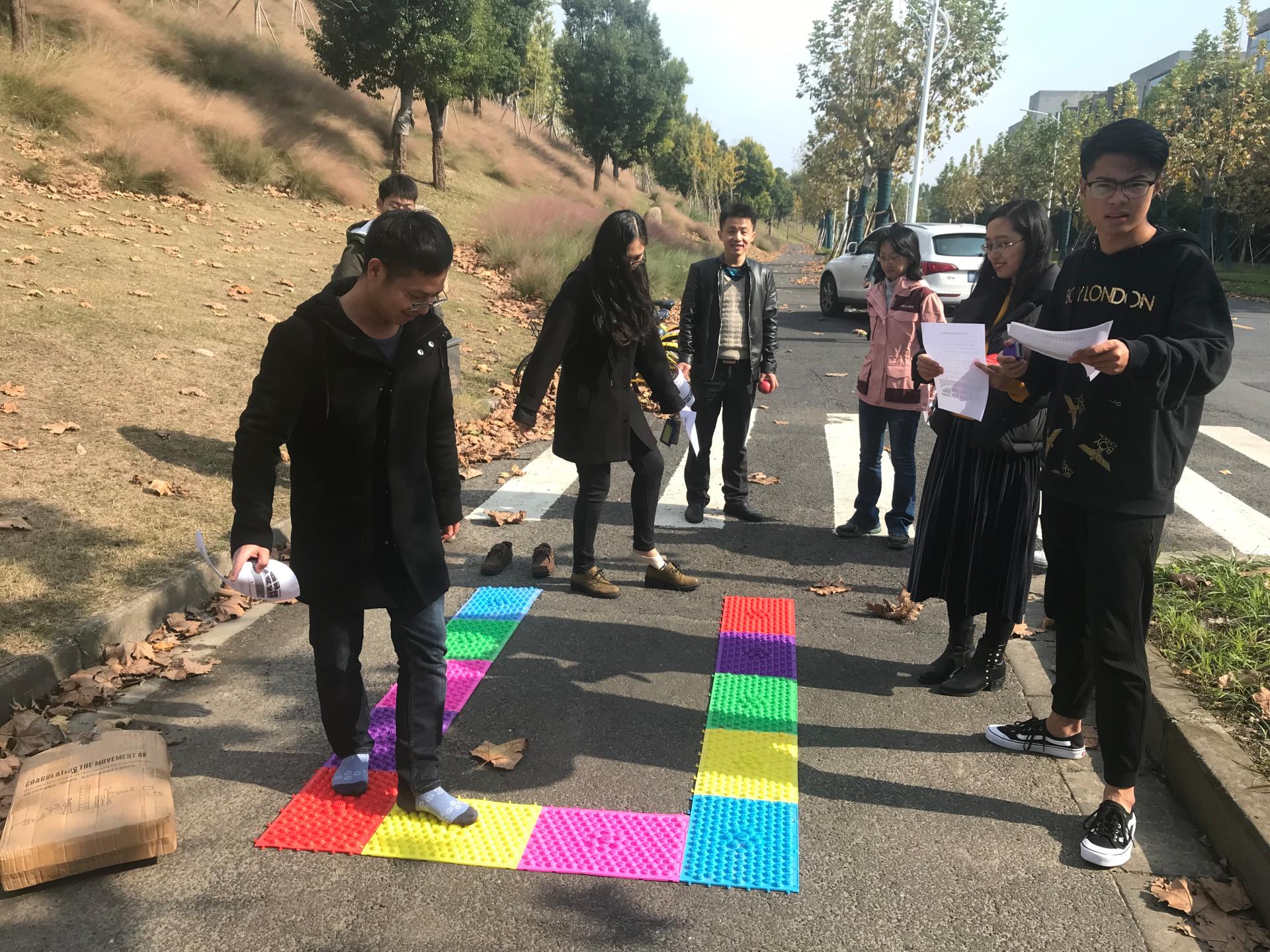 恰阳光明媚,学院教职工结伴而行,一边欣赏学校的美好风景,一边交流畅谈,还能在各个关卡体验不同的小游戏,一起感受健身的快乐。