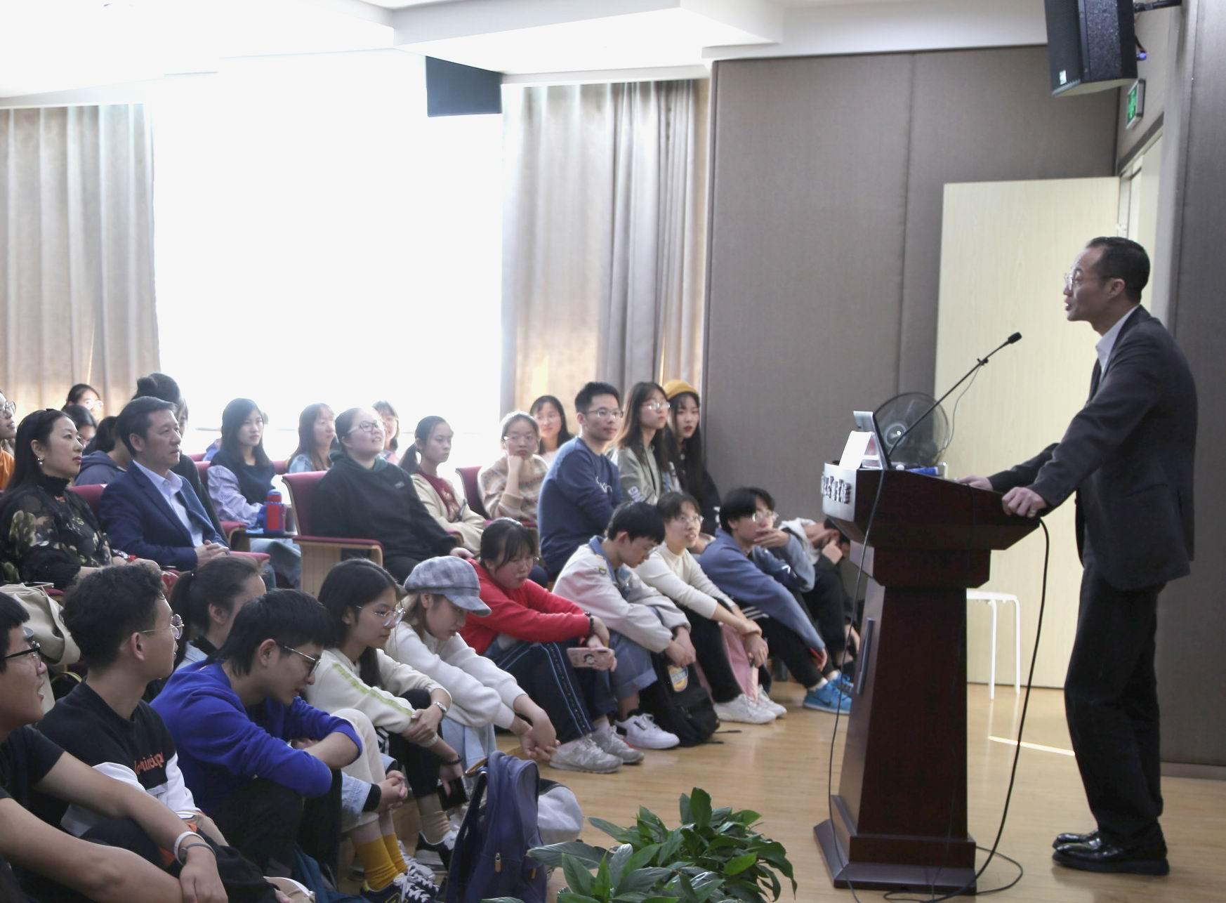 最后,周公敢热情回答了同学们对哲学、对社会、对人生的疑问和看法,引发了许多共鸣与感动。大家纷纷表示,周公敢博士用企业家的理性睿智,过人的文人才气,丰富的人生阅历,宽广的人生视角,引导学弟学妹们通过广义的阅读,感知多元化的人生,为同学们指引了一条开启更多新世界大门的道路。