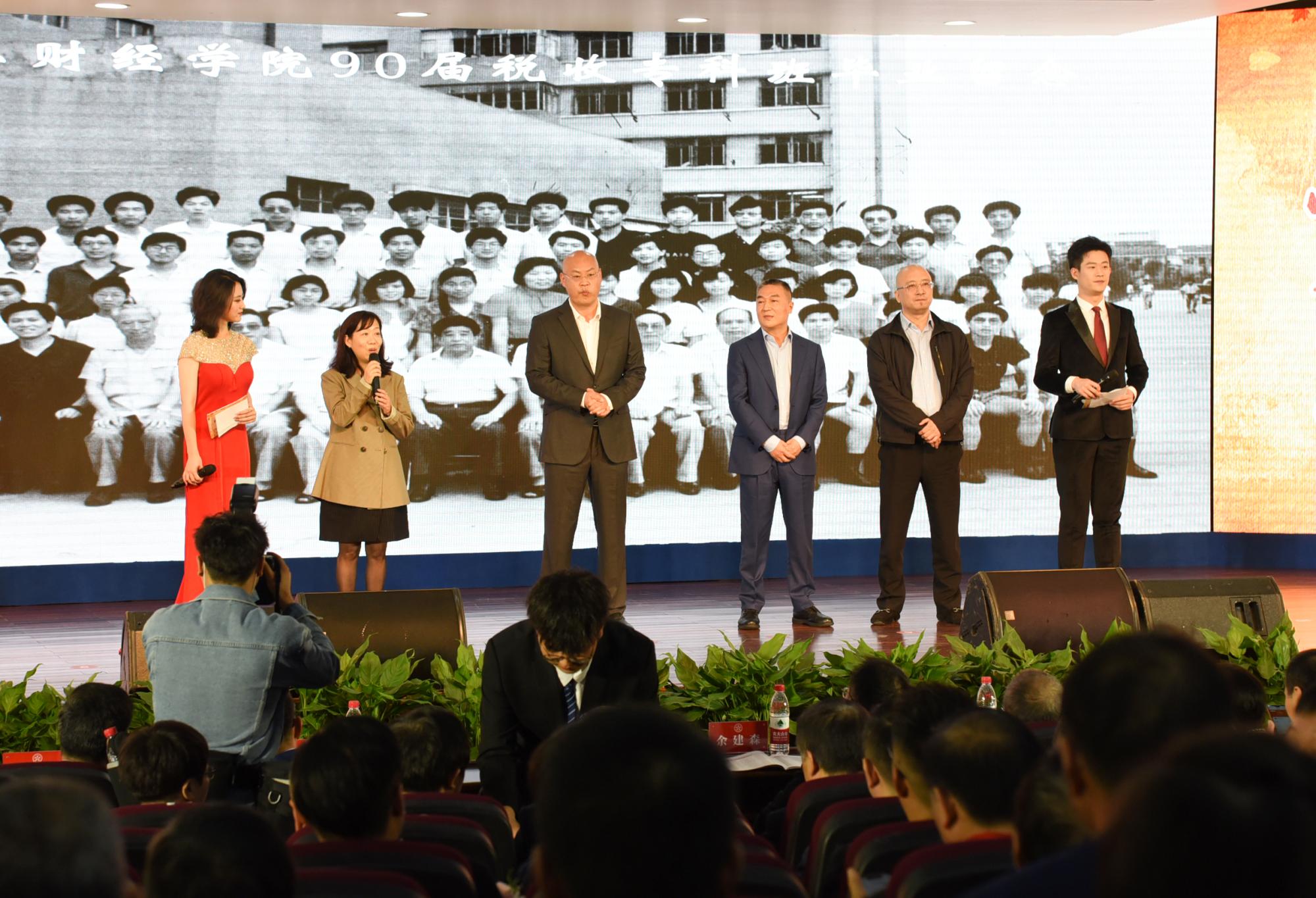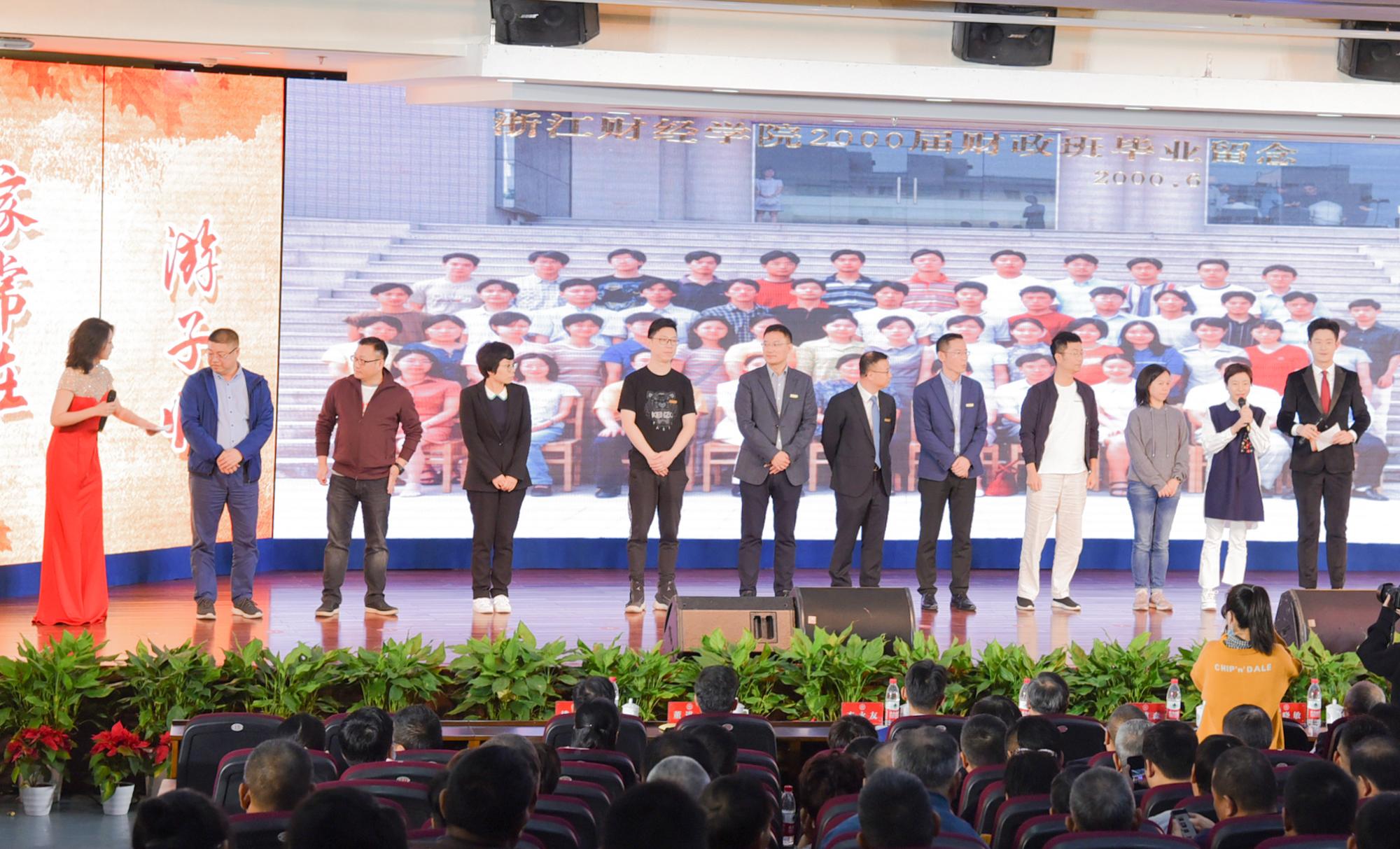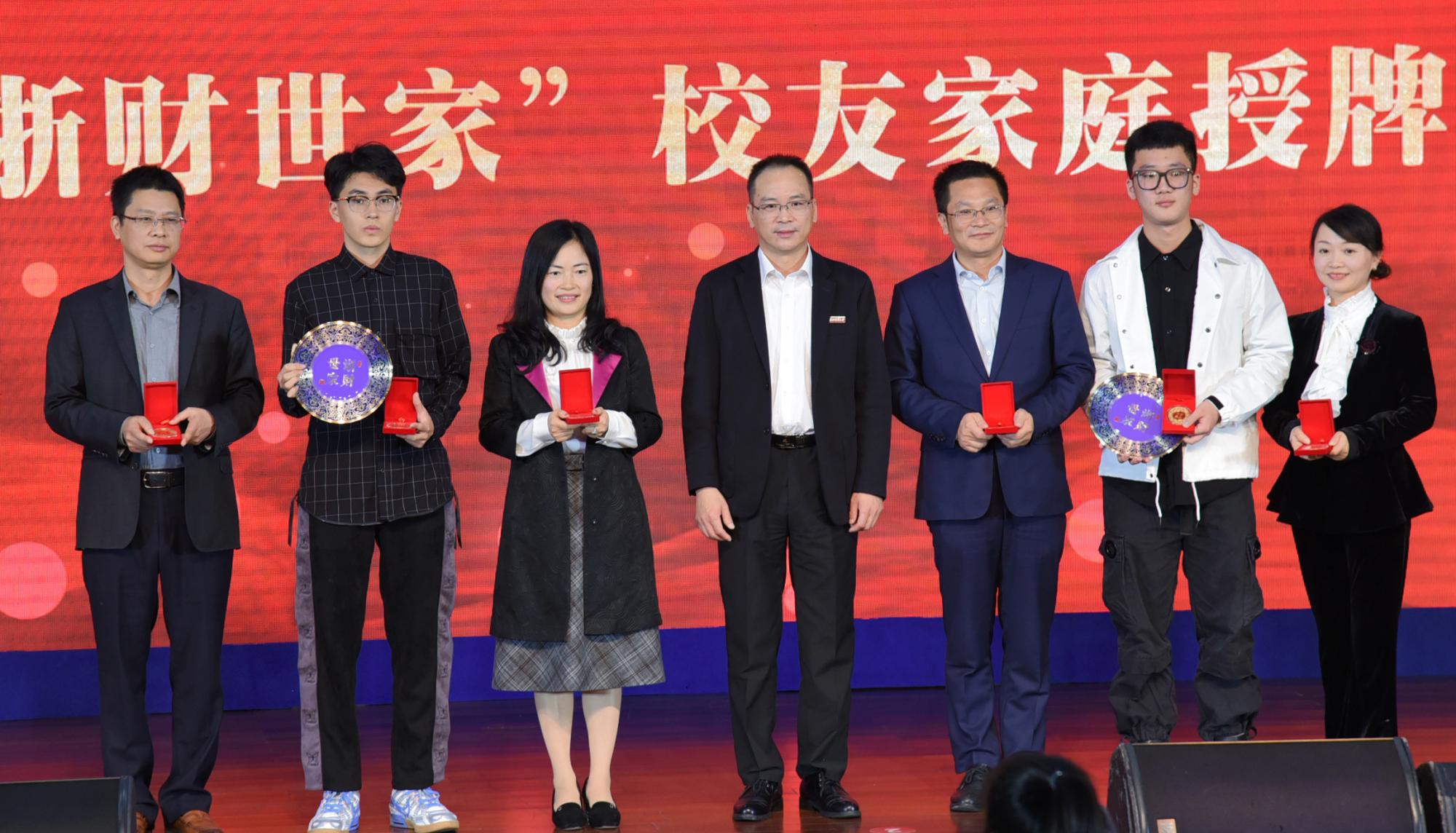 1989届校友周公敢、2001届校友张明分别获得“最美浙财人”桃李奖章、朱晓云家庭获得“浙财世家”荣誉称号,各届返校班级代表依次“向母校报到”。