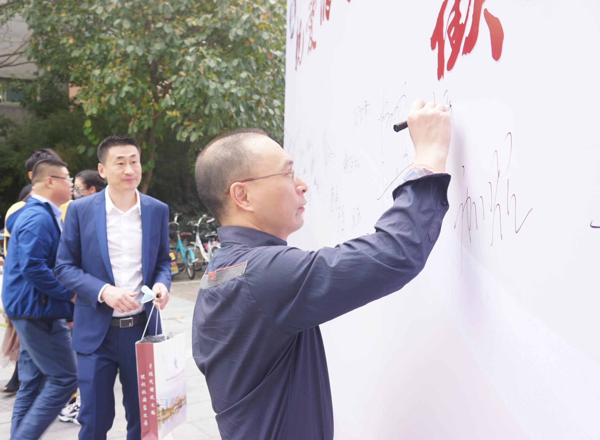 上午八点,校友们陆续来到南门报到处签到并领取学院赠礼。我校校长钟晓敏老师等领导莅临现场,欢迎校友的到来。久别的好友再度聚首,校友们彼此畅谈,在志愿者引导下前往学院楼签字报到,并在校友墙上留下签名留念。期间,“最美校友”张明和知名校友吴其耀分别了做了“医者仁心与共产党人的初心”“创业历程与共产党人的责任心”主题红鹄思享汇。