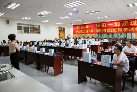 2009届税务2班校友相约返回阔别十周年的母校,共话师生情谊,同续同学友谊,受到了av大平台