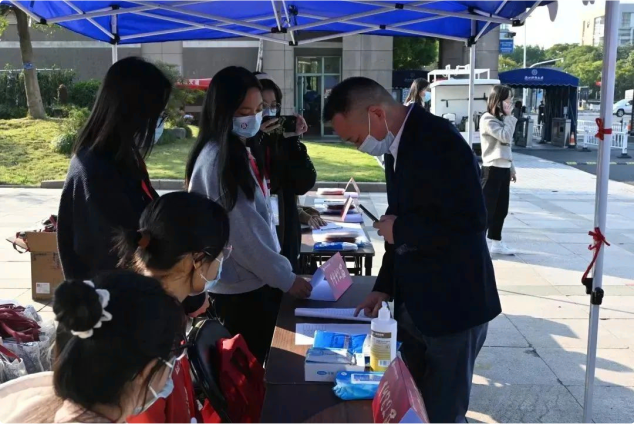 校友们陆续在我校南⻔报到处签名并领取学院赠礼。av大平台