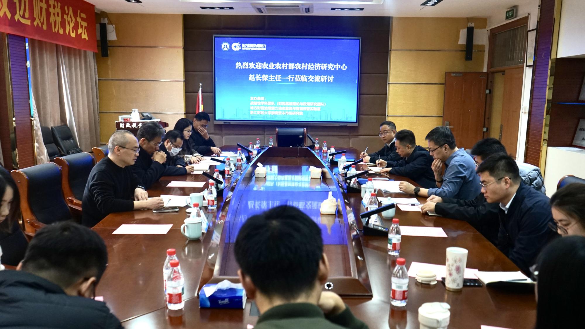 的发展历程、学科特色与办学优势。她指出,服务国家战略和地方经济社会发展是学校的使命所在,学校在推动财税治理现代化、资本市场服务实体经济等方面开展了系列研究,具备了服务农业农村现代化和乡村振兴战略的跨学科研究潜力。郑校长希望双方能以此次交流为契机,在涉农财税政策评估、乡村治理能力监测、农村金融创新等领域探索建立合作机制,共同为推进农业农村现代化贡献智慧与方案。