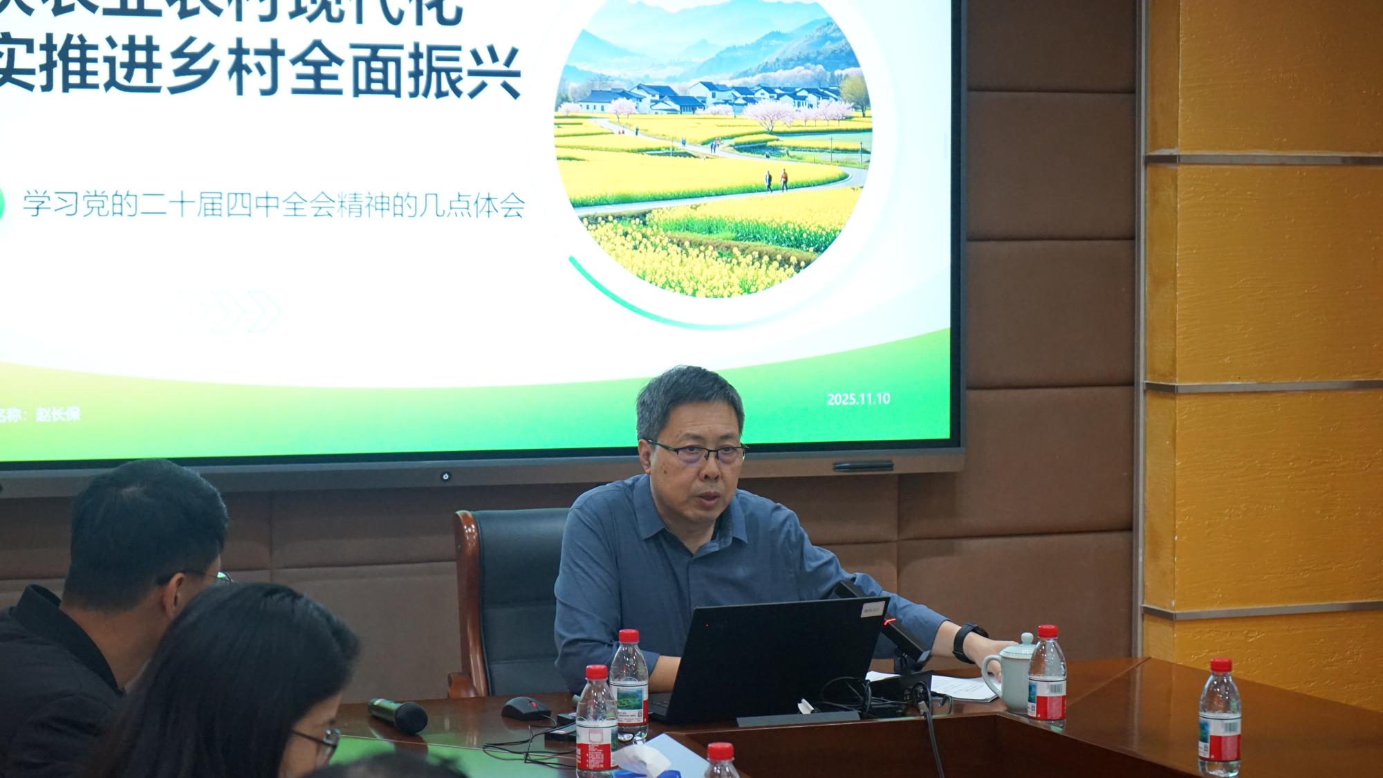 最后李永友教授作总结发言,他表示,赵主任的报告紧密结合党的二十届四中全会精神,对农业农村现代化的战略意义、历史成就、现实挑战与实践路径进行了全面、系统的阐释,具有很强的理论前瞻性和实践指导性。此次交流活动深化了对国家“三农”战略的理解,也为未来拓展校研合作、推动跨学科研究服务乡村振兴搭建了良好平台,共同为推动农业农村现代化事业迈上新台阶贡献力量。