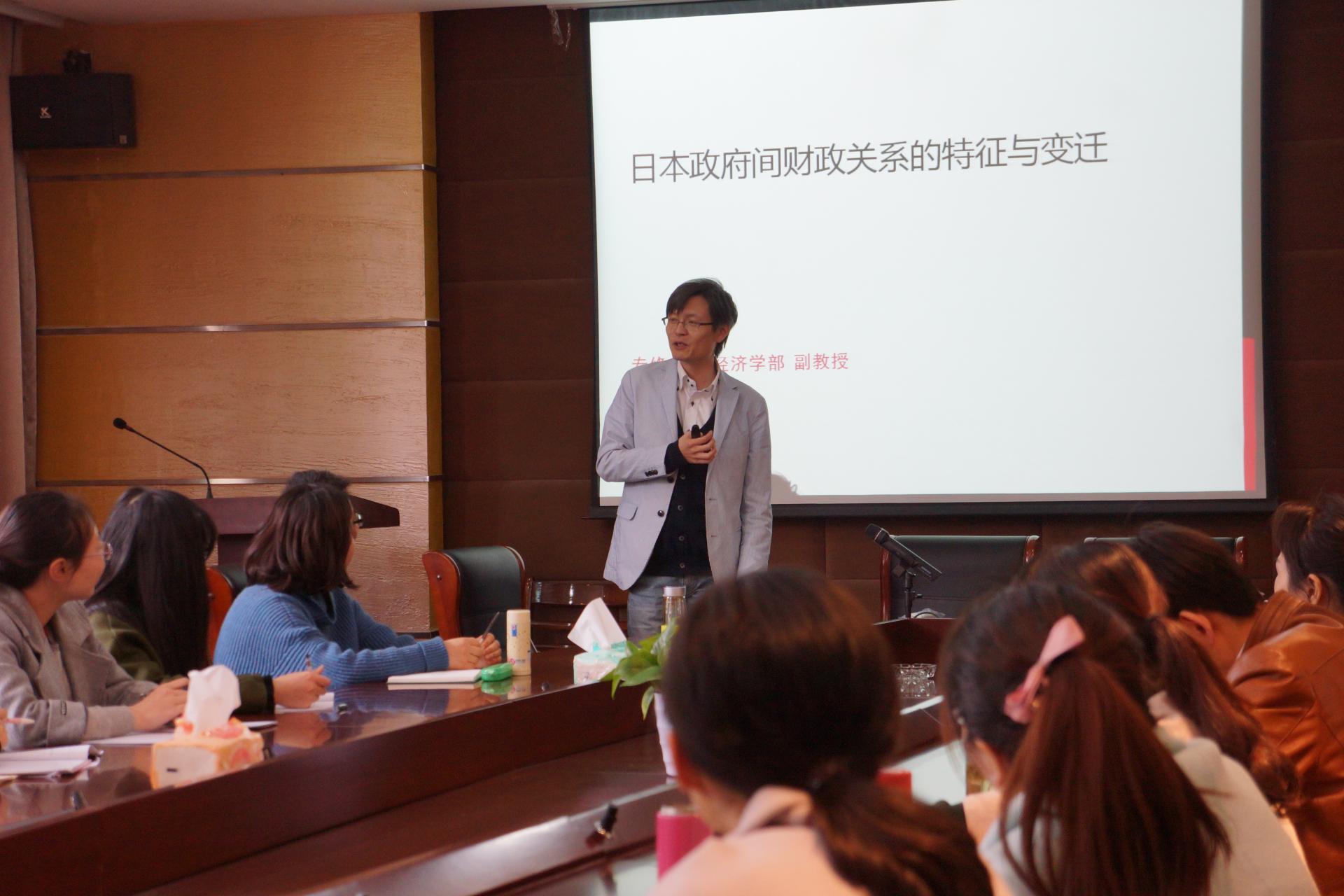 1号楼307会议室做了一场主题为“日本政府间财政关系的特征与变迁”的讲座。讲座由学院院长李永友主持,学院副院长赵海利、财政系教师童光辉、王序坤等以及全院多名研究生到场聆听。