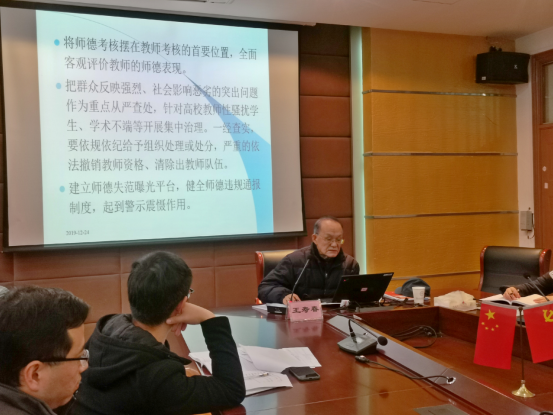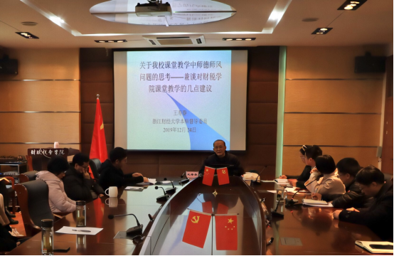 本科教学督导委员会主任王寿春教授开展以“关于我校课堂教学中师德师风问题的思考—兼谈对财税学院课堂教学的几点建议”为题的座谈会。本次座谈会由av大平台