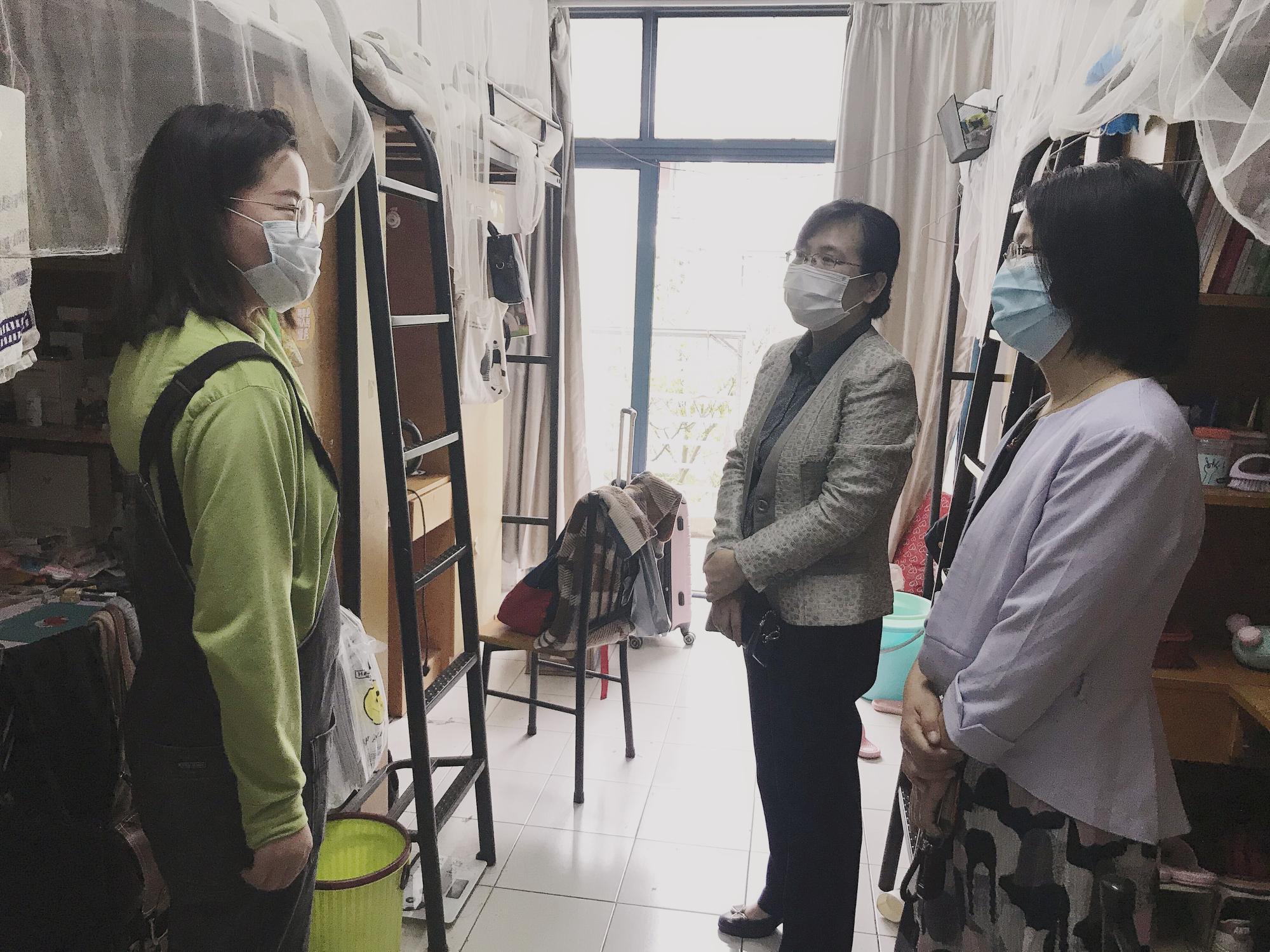 党委书记童玉玲、副书记徐丽玲一行深入学生寝室走访、看望首批返校研究生。