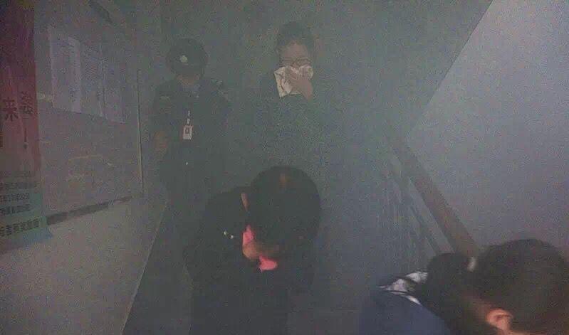 下午1点半,各寝室长先在楼下集合,接受消防安全教育,老师强调了平时要有规避火灾的意识,如出门要关掉电源、禁止使用大功率电器等。而后,老师又讲解了有关火灾现场的应急处置方案及消防疏散过程中的注意事项。下午3点半,紫元公司警卫们准备就绪,烟雾弹被点燃并冒出滚滚浓烟。随着警报声的响起,同学们迅速进入紧急疏散状态,大家用湿毛巾捂住口鼻有序地撤离寝室,楼层指导员在楼梯拐角指明疏散方向。整幢楼都烟雾缭绕,不少同学被呛得直咳嗽。学生到达目的地后,由寝室长确认人数并将结果报告给园区负责人。短短两分多钟,所有同学安全撤离,整个应急演练活动规范有序。同学们临危不乱、组织有序,逃生时没有发生拥挤、踩踏等意外事故。这种仿佛置身于真实火灾现场的经历,让在场的同学们都受益匪浅。最后,同学们在引导人员的的指挥下离开空地,本次演习圆满结束。