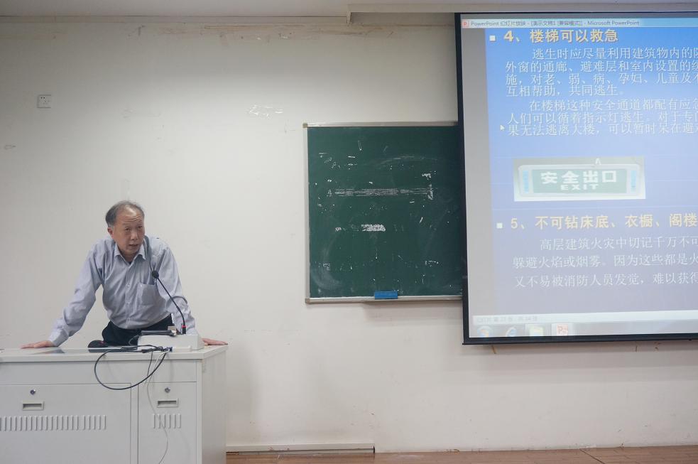 举办的消防安全知识讲座在学院楼106教室举行。此次讲座由校保卫处李晔老师主讲,15级各寝室的寝室长参加了此次讲座。