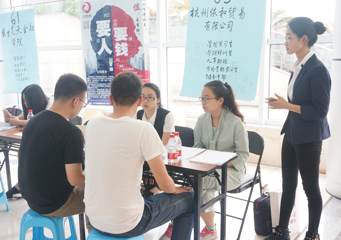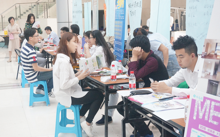团委学生会举办的2016实习招聘会在文化中心一楼大厅顺利举行。此次招聘会邀请了中国平安股份有限公司、万联证券有限公司、浙江链家房地产经纪有限公司、宁波银行杭州分行等60余家企业参与。这些企业涉及行业广,提供的实习岗位多,涵盖电子信息、人力资源、市场营销、平面设计、财务会计等多个专业。丰富多样的岗位为我校学生的实习职位选择提供了很大的空间。