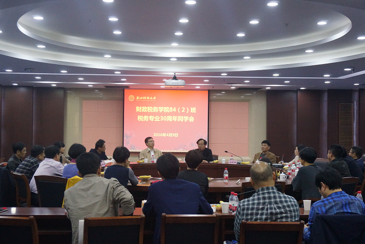 今后发展的蓝图;黄力寅老师以幽默的语言感谢了在场的各位并真心地祝福母校不断往前发展;84级税务2班的钱班长则回忆了三十年前的同窗岁月,以哲理性的话语对大家寄予了美好的祝愿,在场的校友无不感慨。最后,由院党委书记杨春玲宣布此次会议结束。会议结束后,出席此次同学会的校友到图书馆前进行集体合照留念。至此,本次84级税务2班同学会圆满结束。
