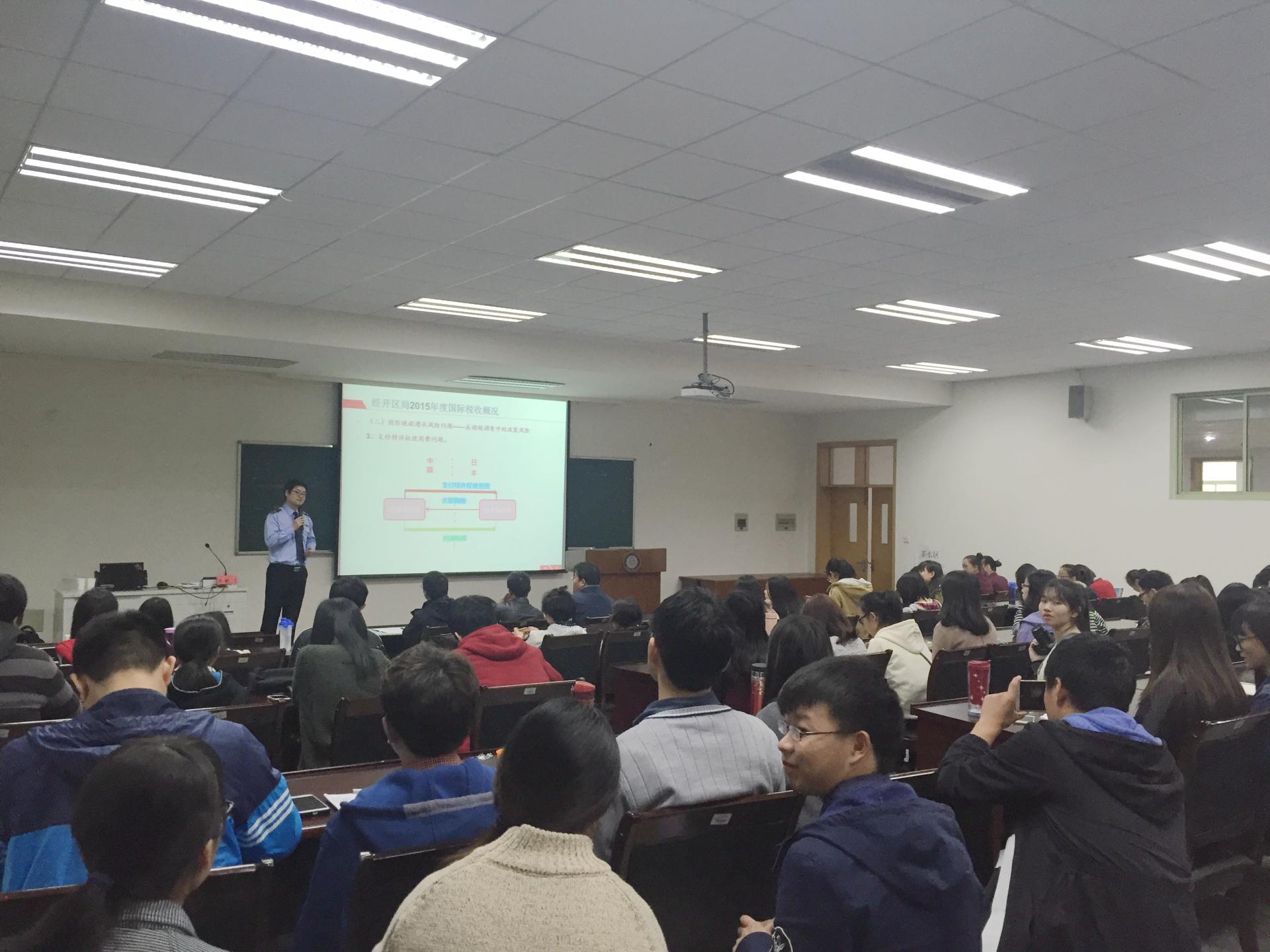 3月31日下午1:30,在学院楼106教室,杭州下沙经济开发区国税局王敏志科长受邀为av大平台