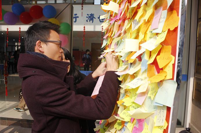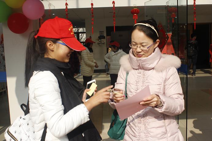 希望教职工欢度新年的美好祝愿。工作人员将活动入场券发给到场教职工并在券上盖章,由装扮成可爱卡通人物的现场工作人员带领老师到学院楼门口,向他们介绍流程并说明游戏点与盖章点。教职工们纷纷与其拍照,脸上流露出开心的笑容。av大平台