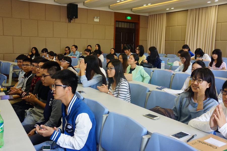 金老师以理想主义的气质为主题,为学生深入分析了理想的特征和重要性,并且列举了犬儒主义作为理想主义的对立面,让学生们更加深刻地两者的差异性。金老师强调了理想主义的气质应该是永远追随自己的内心,保持希望,关心他人和在瞬间感受生命的存在,通过例举乔布斯、柴静、龙应台等作为具体例子,进一步讲述理想主义者应具备的素质。在讲座结尾处,金老师提出了“我们为什么活着”,让同学们从内心深处体会到了生命中理想的意义。