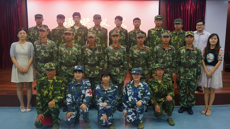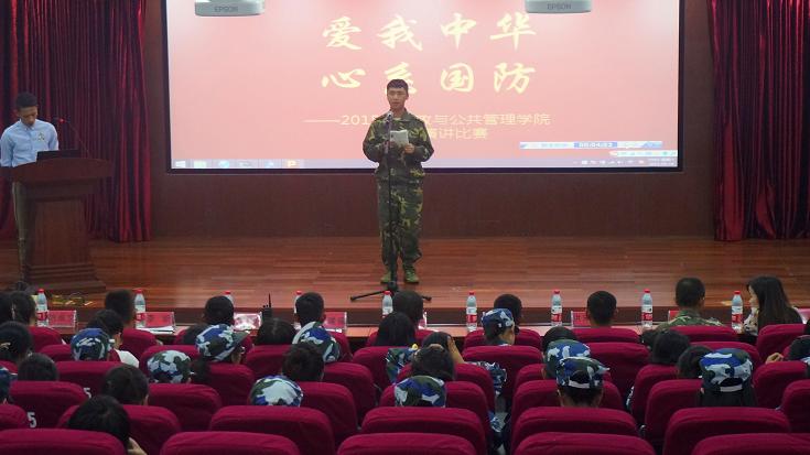 2015级新生军训国防演讲比赛在校学术中心第四报告厅火热开赛。一营营长王津,教官杜全鹏、李明、杨成东、张建强、洪宋宋、王国庆,学院辅导员胡卓文、沈勇、翟丽媛出席。正在经历军训的2015级全体新生观看了比赛。