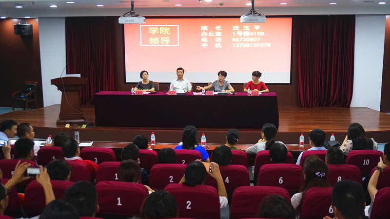 2015级新生家长会在学术中心四号报告厅举行。院长沈玉平、党总支书记吴利群、副院长杨春玲、党总支副书记杨小恩出席会议。会议由吴利群书记主持。学院各系主任、行政办、教学办、辅导员和2015级本科生、研究生新生家长300余人参加了会议。