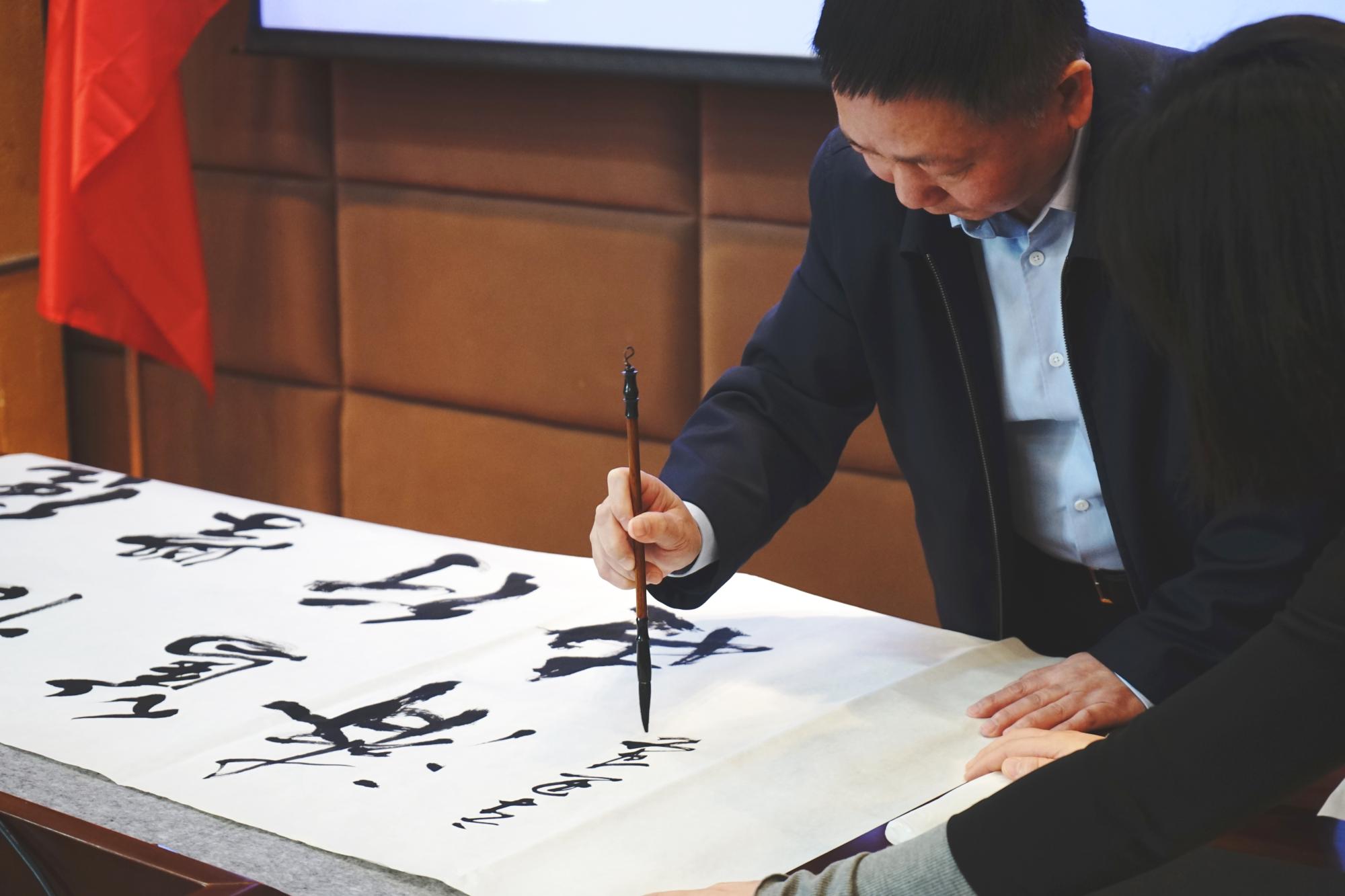 最后,杨灿明校长挥笔题写了av大平台