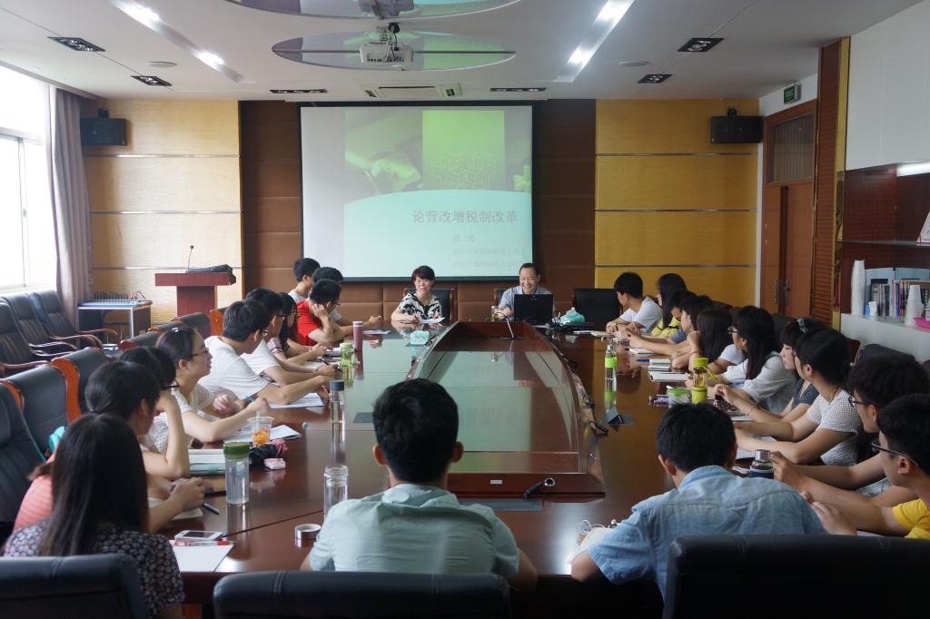 2014级税务专硕研究生作“’营改增’现有政策分享及趋势政策分析”的讲座。