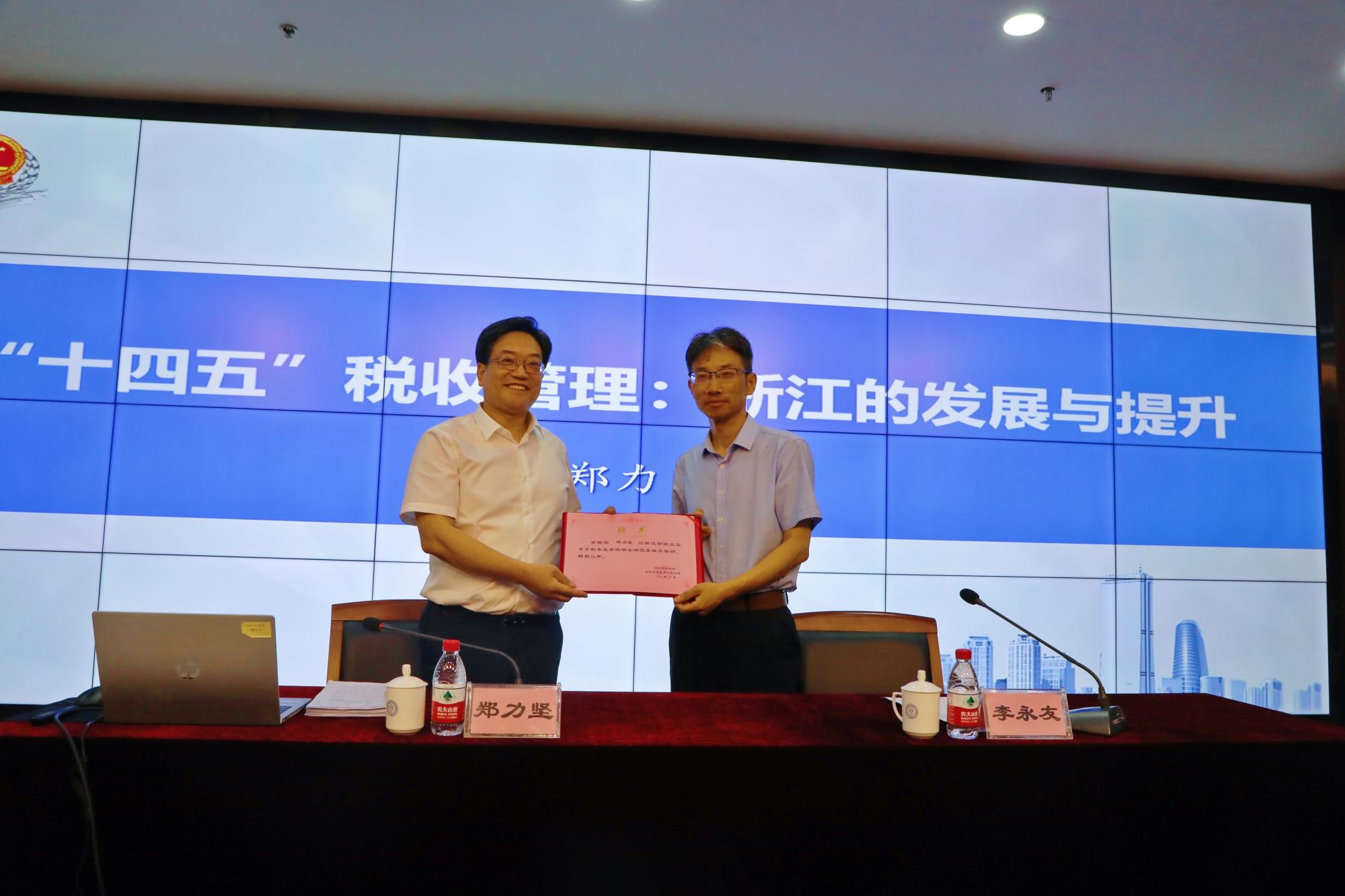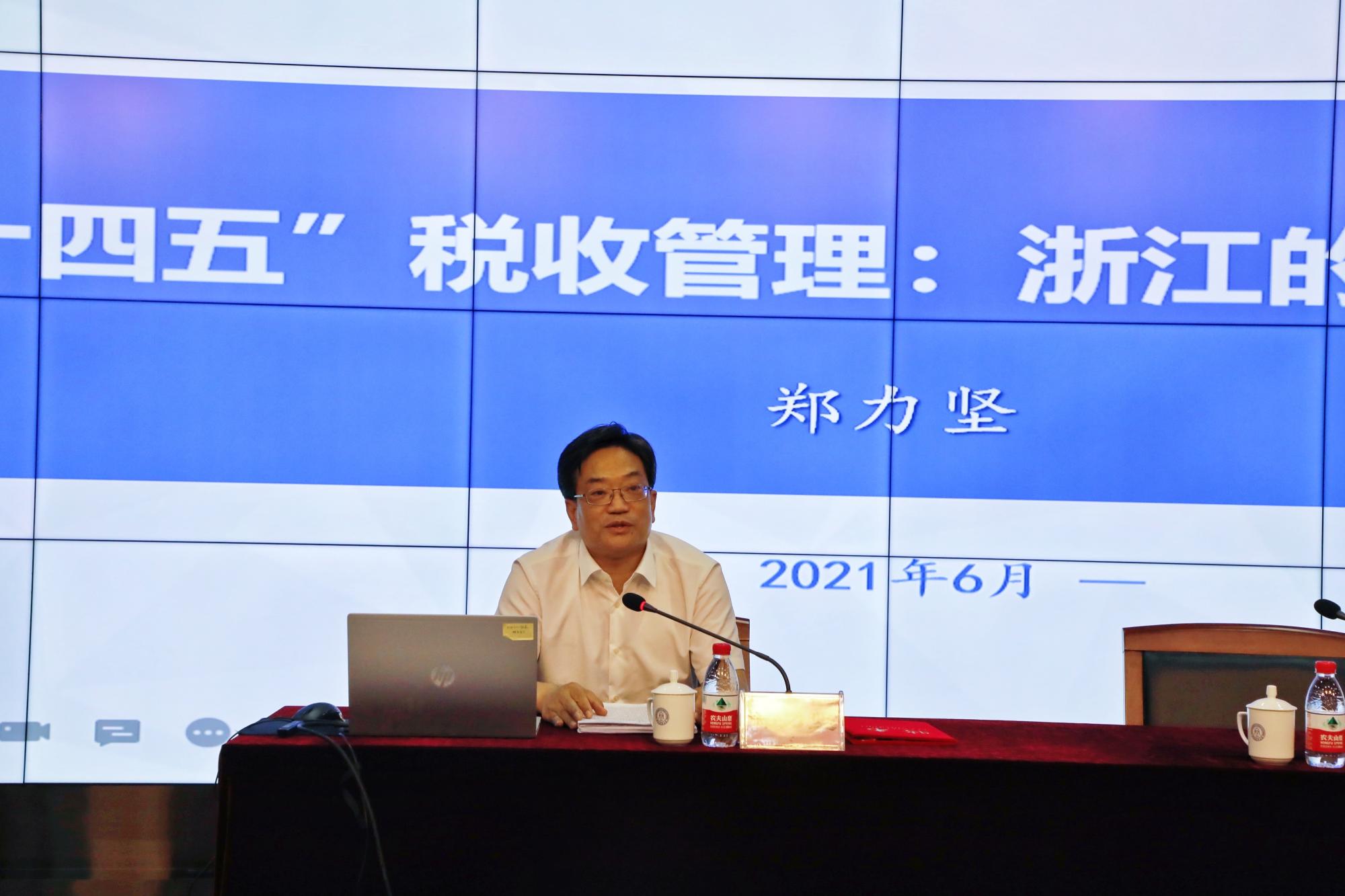 郑力坚局长首先从世情、国情、省情三个层面阐述了他对“十四五”规划的理解。之后从深化税收征管改革、加强对平台经济的税收管理、办税缴费便利化与营商环境、全面推行发票电子化和税收整体智慧与数字化转型五个方面详细报告了浙江省“十四五”时期税收管理的若干重大部署。郑局长的报告深入浅出,为我校师生的科学研究及更好地服务税收事业发展提供了重要指引。