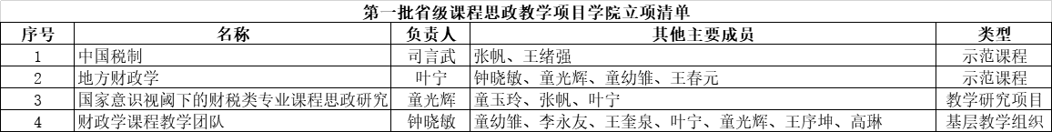 近日,省教育厅公布了第一批省级课程思政教学项目建设立项名单,学院《中国税制》等4个项目榜上有名。其中,省级课程思政示范课程2项、课程思政教学研究项目1项、课程思政示范基层教学组织1项,这是av大平台