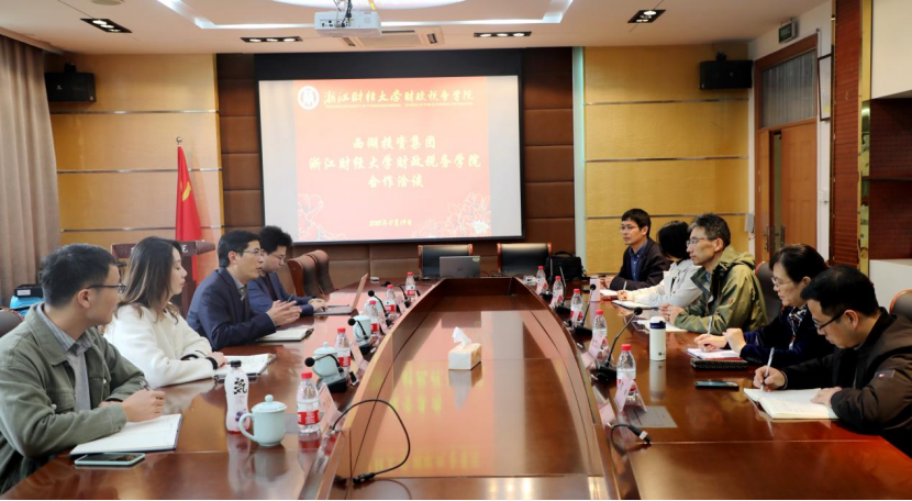 党委书记童玉玲、李永友教授、副院长高琳、副书记徐丽玲、税务系主任张帆参加洽谈。