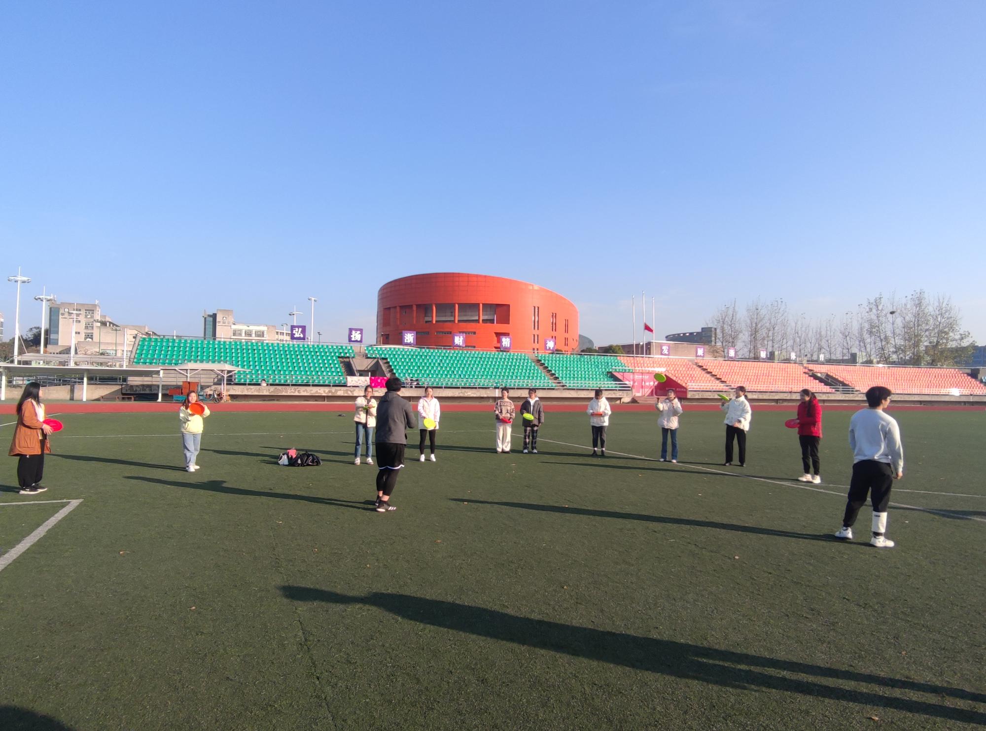 首先,龚成章同学为大家详细讲解了相关动作要领及训练规范,在熟悉传接盘后,龚成章同学组织大家开展了4V4对抗赛。尽管绝大多数同学首次接触飞盘,但是大家很快上手,接盘、闪躲、飞扑、摔倒、起身……同学们动作生疏但也有模有样,大汗淋漓不乏乐在其中。几个回合后,同学们不仅展示了风采,还拓展了交际。