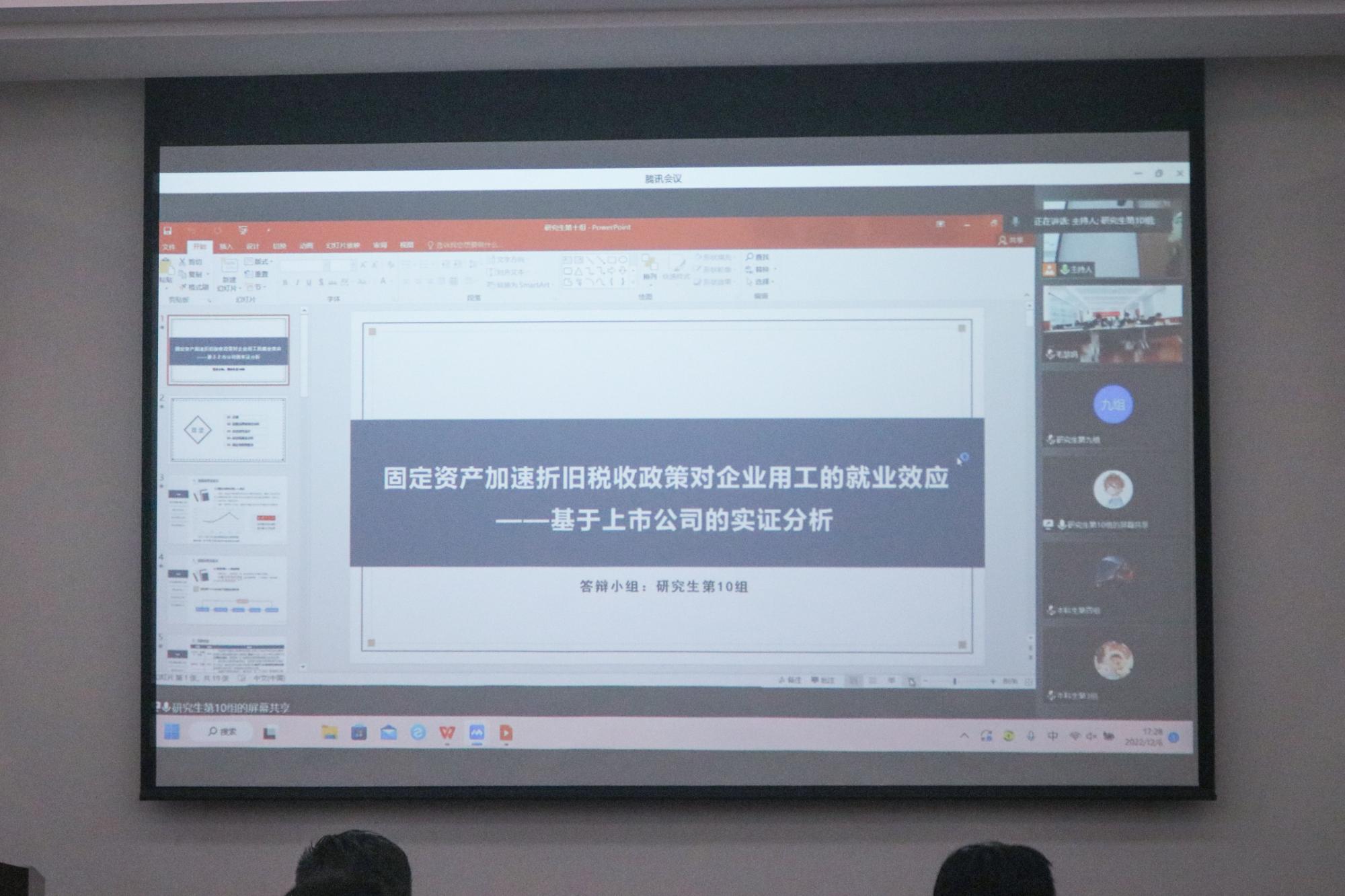 本次论坛采取线上与线下相结合的形式,共分为初赛、决赛(现场答辩)两个阶段。决赛环节分为本科生组与研究生组进行,每个参赛队伍根据赛前抽签顺序依次进行汇报展示与答辩。选手们围绕“共同富裕:理论与实践”这一主题,结合共同富裕的时代内涵,主动运用财税专业知识深入调查研究,就此提出看法与建议。三位评委老师按照公平、公正、公开原则,对选手的论文答辩进行提问与点评打分。
