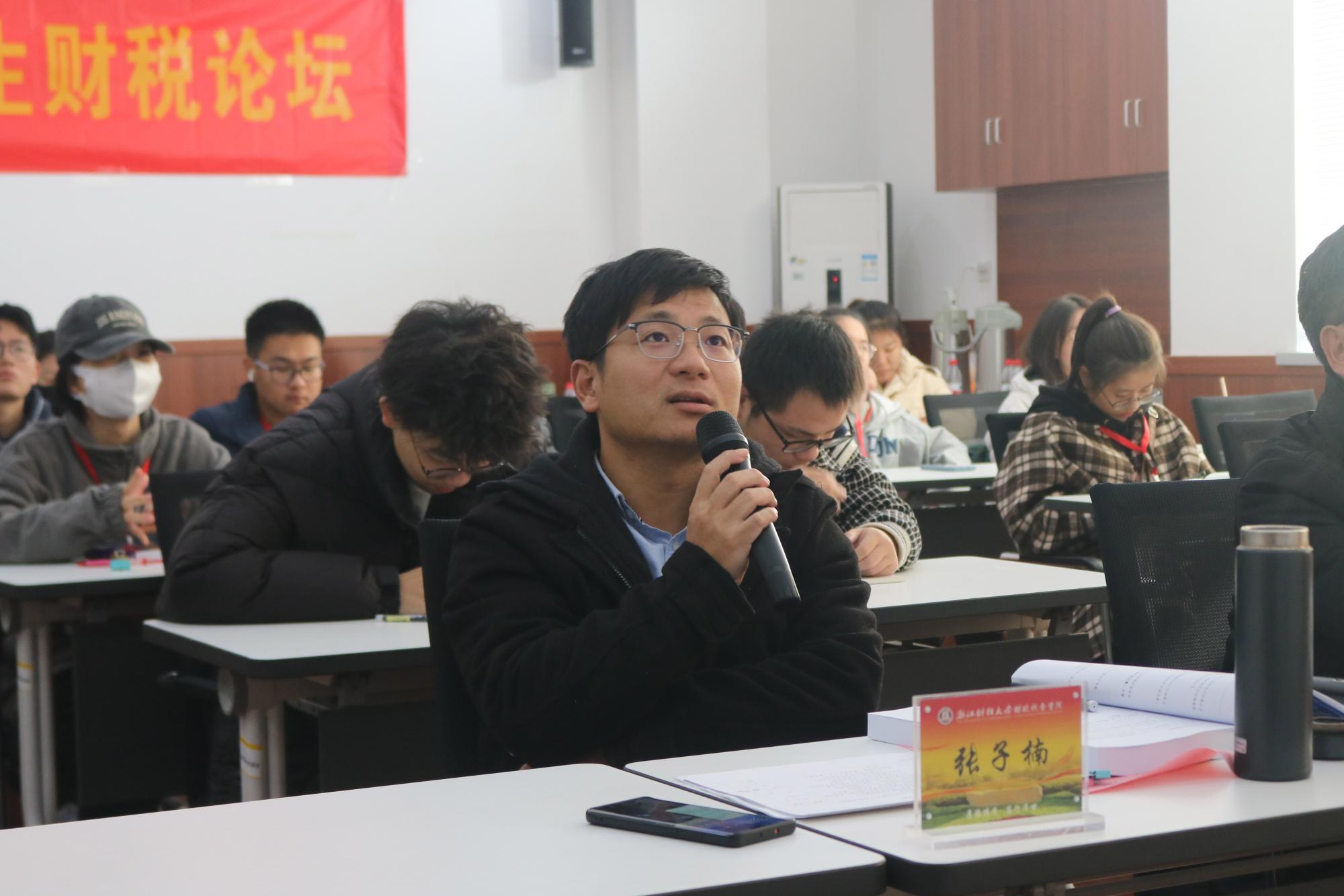 随后,本届参赛选手代表孙新分享了自己对财税论坛的感谢与认识。他鼓励我辈学子在各自领域砥砺前行,深入实践,呼吁同学们为社会发展贡献大学生智慧。