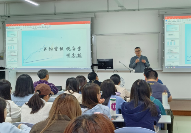 10月13日晚上,在中国税制专题(高级)课堂上,邀请了资深税务专家、我校税务专硕社会导师杨春根老师,为23级全体税务专硕带来专题为“并购重组税务案例分析”的课程讲授。杨春根老师在税务系统工作多年,擅长资本运作、企业并购重组及房地产的税务管理及高端税收规划。长期从事税收政策研究,理论功底深厚,在《中国税务报》等媒体发表文章近百篇。为注册税务师协会、注册会计师协会、律师协会、税务干部、企业高管和财务人员提供培训服务,累计线下培训百余场。本次授课由学院副院长张帆副教授主持。