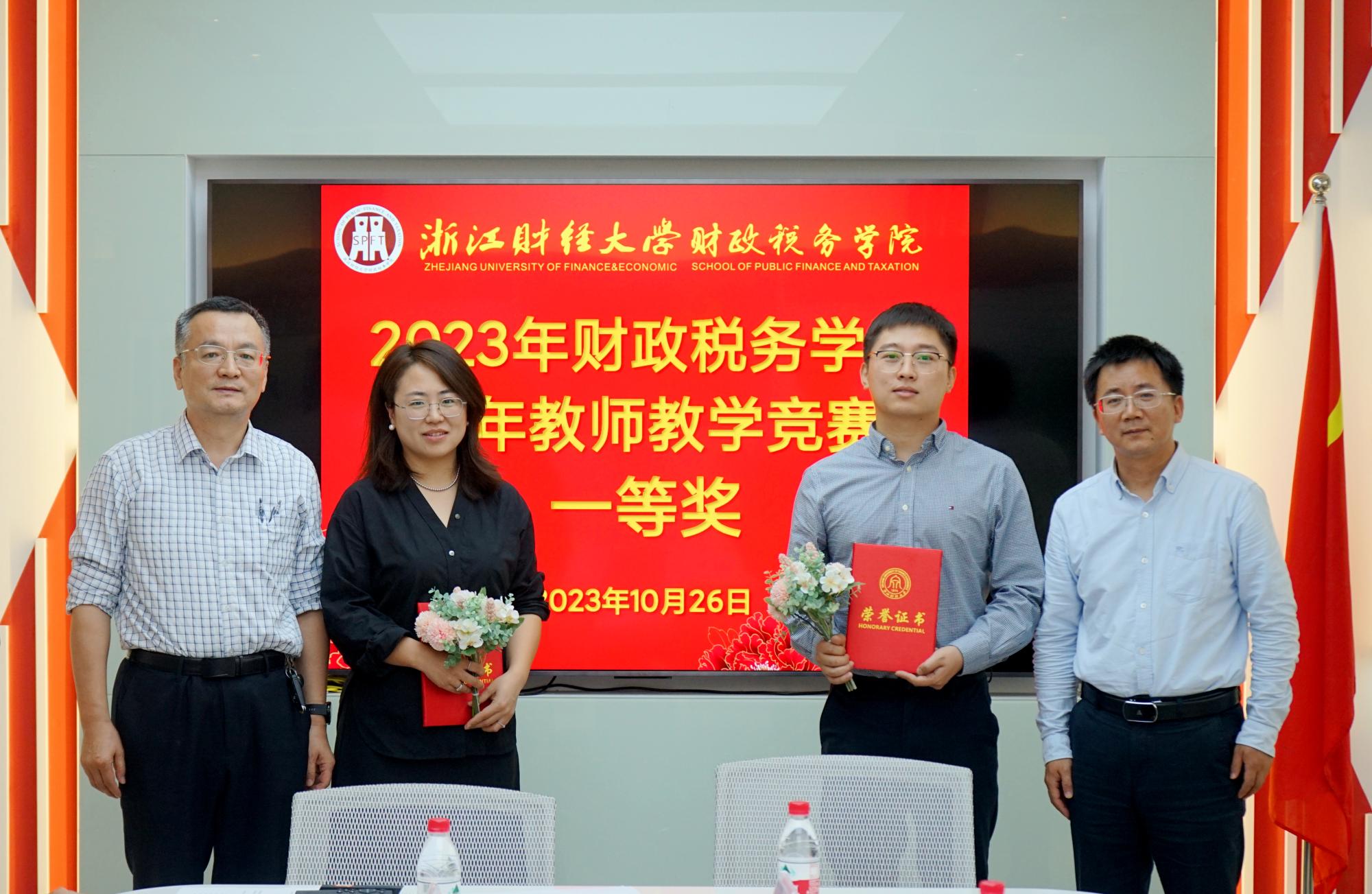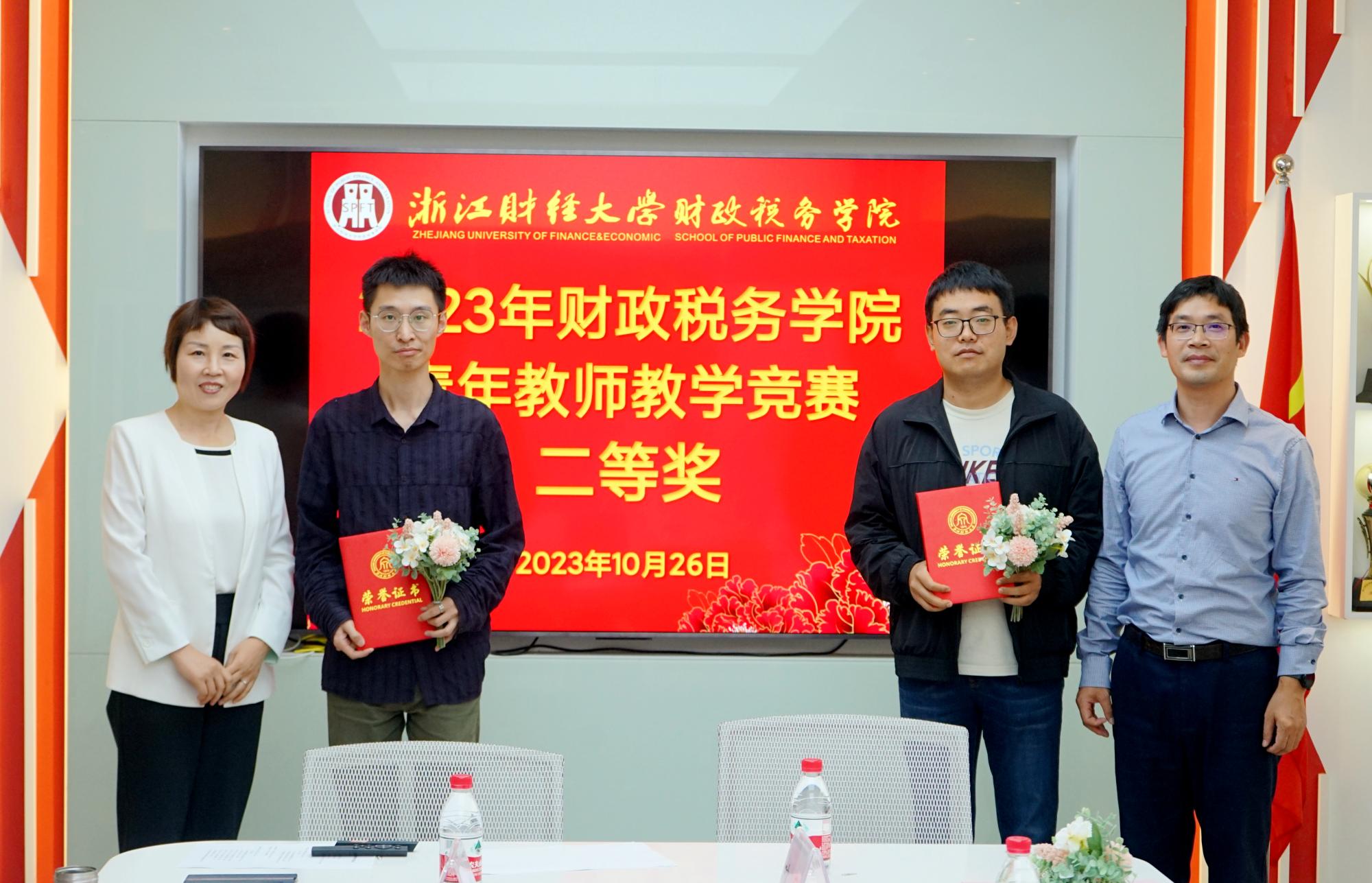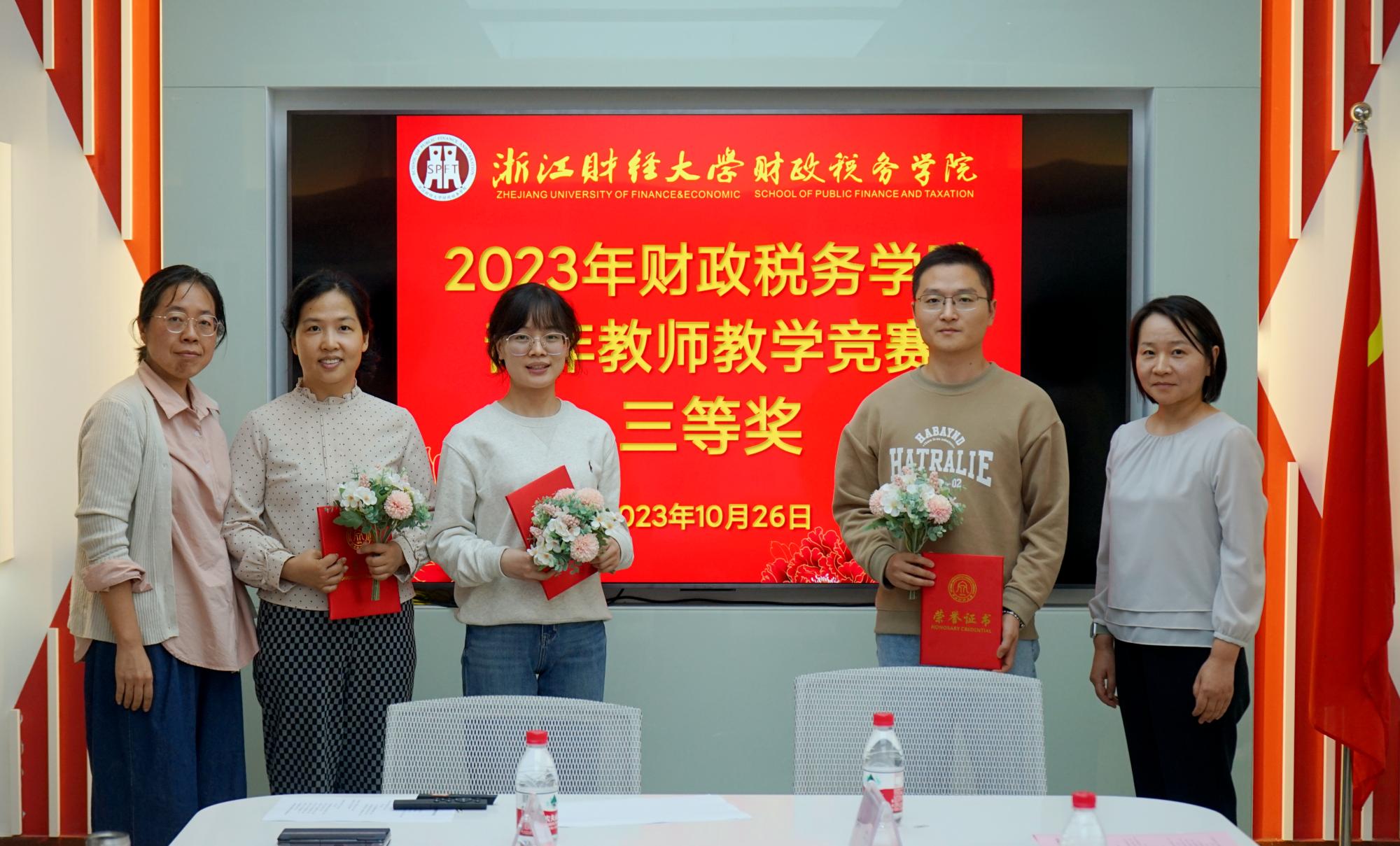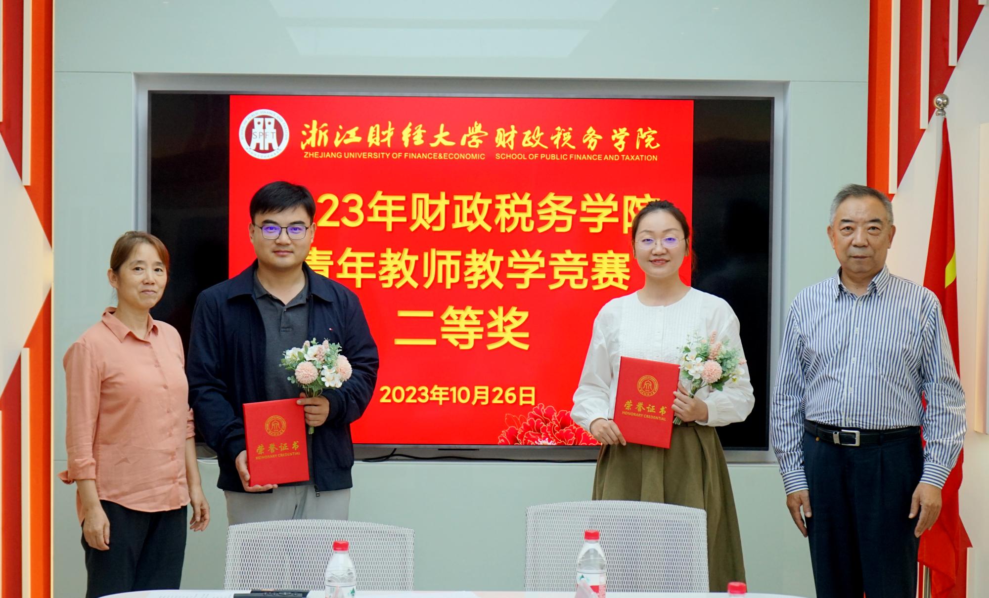 比赛结束后,现场还举行了颁奖典礼,财税学院院长司言武教授宣布了比赛结果,各位评委老师为获奖教师颁发获奖证书并送上鲜花表示祝贺。教务处副处长厉国威在总结发言中,充分肯定了财税学院在教学方面的举措及青年教师的能力,期望未来青年教师可以不断学习,砥砺奋进,不断推动学校教学事业的发展。校督导组组长崔大树则提出了一个建议,希望财税学院青年老师进一步在课程内容、表达及PPT制作方面不断打磨,在今后学校比赛中取得更好成绩。孟泽红教授为各位青年教师提供宝贵经验:在自己最满意的一节课后不断反思自己,总结经验,寻求突破,超越自己。最后,司言武院长表示,财税学院将继续开展相关教学比赛,兼顾学科建设和教学建设,打造av大平台