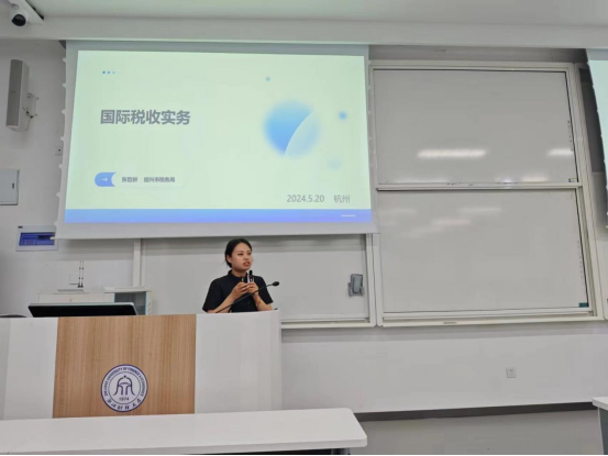 在本次授课中,张老师结合自身丰富的工作经验,主要从三个方面给同学们介绍国际税收的实务工作。一是国家税务总局国际税务司的部门结构与职能。首先,张老师详细讲述了国家税务总局国际税务司的部门构成,以及不同部门所承担的职能;其次,她还进一步讲解了国家税务总局整体架构的组成与运作方式。二是“税路通”跨境税费服务品牌及“税路通·在浙里”子品牌。首先,张老师为大家详细介绍了由国家税务总局推出的“税路通”跨境税费服务品牌,具体包括一个服务矩阵、两个服务团队、三个服务机制和四个知识产品,通过国家税务总局官网和微信公众号,她为大家演示了在日常学习中如何快速获得有关国际税收方面的可靠资料与信息,如税收协定、国别报告、税改新闻等;其次,她着重介绍了由浙江税务部门推出的“税路通·在浙里”子品牌,向大家展示了“国际税收浙里学”“安东尼办税记”等具有浙江特色的知识产品。三是国际税收合作。张老师首先为大家讲解了当前由各大国际组织主持的重点国际税收项目,包括项目建设规模、参与成员、建设理念、建设内容等;其次,她为大家介绍了各大国际组织发布的知识产品,如协定范本、规则指南等,以及其获取途径;最后,她分享了参与各大国际税收会议的经历与感想,并对同学们的提问进行解答。