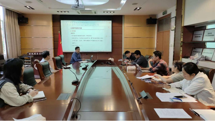 本科教育教学审核评估工作推进会议。会议由张帆副院长主持,学院院长、督导组、正副系主任、各办公室主任等出席会议。