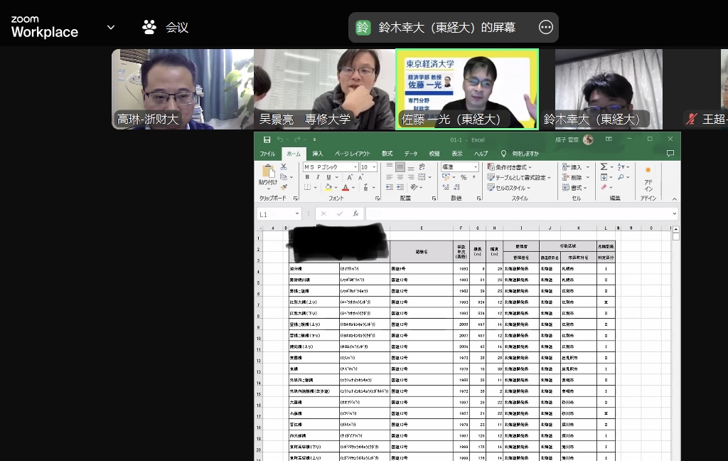 副院长高琳、王超老师、赵颖茹等研究生参会,日本专修大学徐一睿教授、日本东京经济大学佐藤一光教授、博士生铃木幸大等参会研讨。