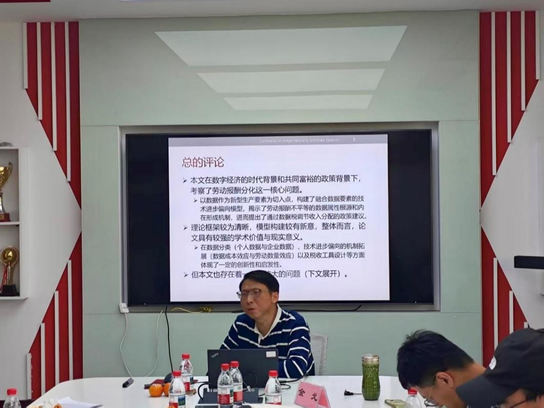金戈老师对李太龙老师的创新性研究表示高度评价。同时,金戈老师建议进一步完善模型,以更全面地反映经济现实。具体而言,模型可以考虑引入家庭跨期决策、市场出清和劳动流动机制,以增强其动态均衡特性。此外,建议分析劳动技能与数据属性之间的互补关系,并通过数值模拟来验证数据税对技能溢价的长期调节效果。