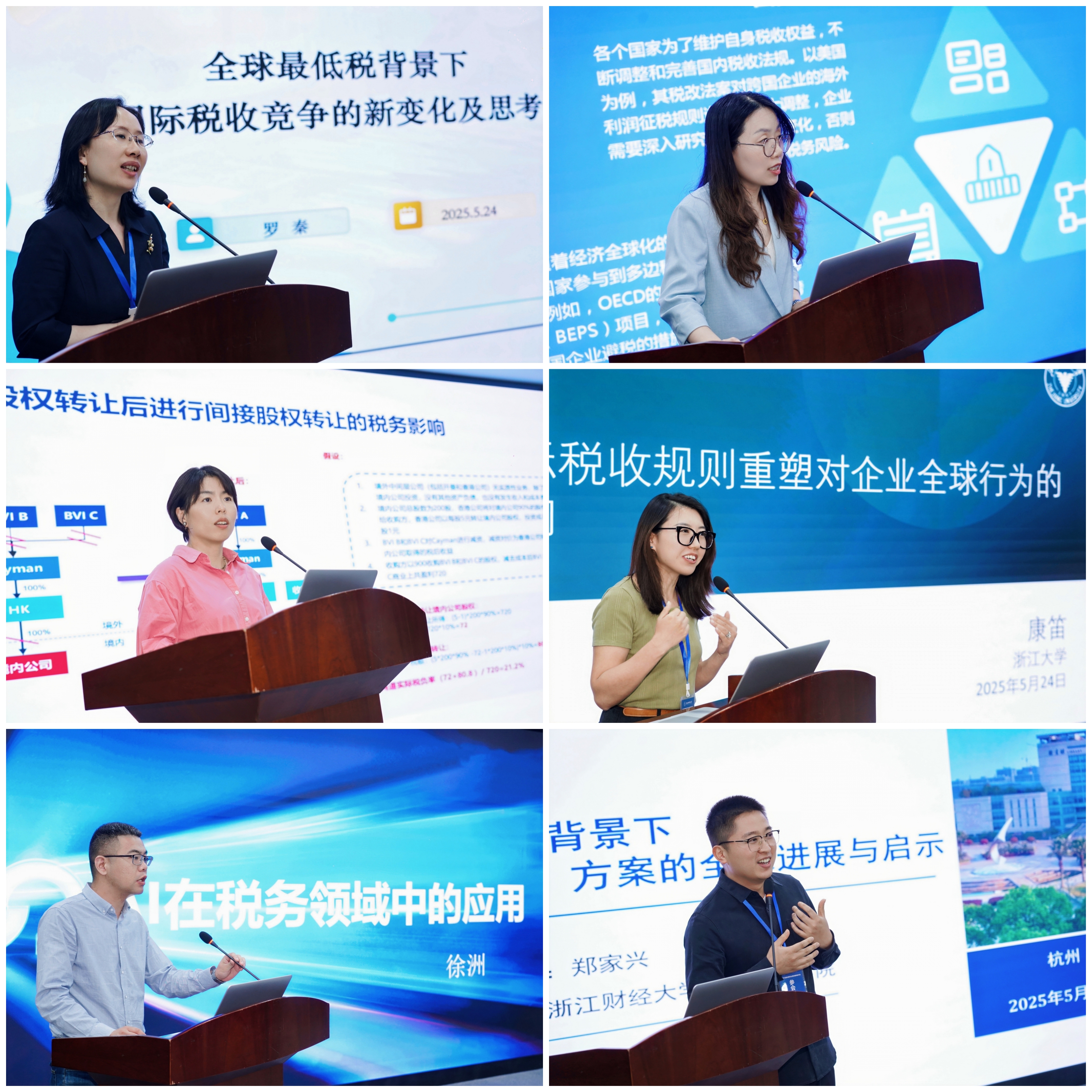 北京国家会计学院党委委员、副院长,院学术委员会主任、教授,博士生导师李旭红作题为《数字经济下跨境服务贸易的增值税研究》的主题发言。她深入探讨了跨境服务贸易增值税管理面临的挑战,提出了完善我国跨境服务贸易增值税管理的建议。国家税务总局国际税务司国际税收协定处副处长张瑾作题为《数字经济时代的国际税收协调》的主题发言。她梳理了G20/OECD包容性框架与联合国近年来进行数字经济国际税收协调的一系列成果,并分析了近期各国的政策变化。她提出,当前国际税收协调有待进一步推进,各国相关税收政策存在不确定性,我国财税部门应继续积极参与多边协调,共同推动形成稳定的国际税收环境与国际税收规则体系,更好服务“走出去”企业。国家税务总局税收科学研究所国际税收研究室主任魏东方作题为《美国关税政策历史演进及评析》的主题发言。她详细阐述了美国关税政策历史演进的几个阶段。她认为,在美国200多年的经济发展史中,关税政策一直扮演着重要角色,对美国乃至世界经济都有着深刻影响。中汇税务事务所总经理、浙江省国际税收研究会副会长方敬春作题为《关于税务师事务所走出去——东南亚国家税务服务研究》的主题发言。他分析了RCEP全面生效及东南亚各国税收优惠政策为跨境税务服务带来机遇,以及国内事务所面临多重挑战,并提出应对策略。厦门大学教授朱炎生作题为《在国际税收治理中主权话语的应用》的主题发言。他提出当前国际税收治理体系面临大国博弈与主权平衡的双重挑战,并指出我国应坚持多边主义,维护自身税收主权等建议。国家税务总局浙江省税务局国际税收管理处处长黄碧波作题为《“走出去”企业境外利润回流税收负担问题研讨》的主题发言。他指出,随着中企境外投资规模扩大,优化跨境税收政策成为促进资本回流的重点,并提出了相关政策完善建议。中央财经大学教授何杨作题为《关税冲击对中国高科技行业的影响及思考》的主题发言。她分析了新一轮加征关税的影响,她建议完善我国支持技术创新的税收政策。普华永道上海分公司合伙人王桢梁作题为《“走出去”企业面临的国际税收挑战与应对》的主题发言。他表示未来十至二十年,对国际税收人才会有一个很大的需求,国际税收专业大有可为。