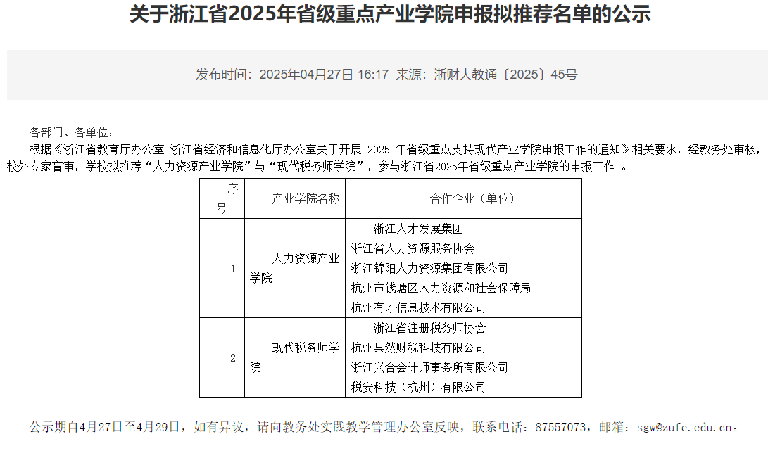近日,根据浙江省教育厅、浙江省经济和信息化厅关于开展2025年省级重点产业学院建设申报工作的部署,以及学校教务处发布的《关于开展2025年省级重点支持现代产业学院建设申报工作的通知》要求,经学院申报、学校组织专家评审等程序,av大平台