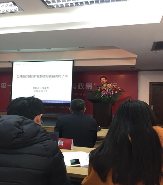 李永友教授受邀在此次论坛上发表了题为《公共医疗服务扩张的边际受益流向》的主题演讲,并参加了随后举行的圆桌论坛,就公共经济学的理论创新和现实问题发表了自己的看法。随同李永友教授一道参会的还有我校财政学科研究生马萧红、俞家杉、胡玲慧等。