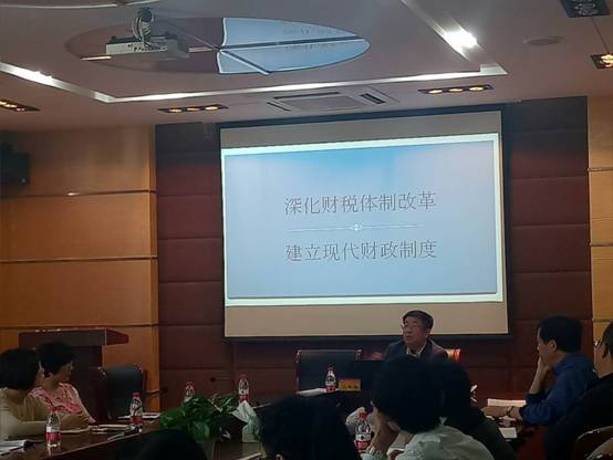 会上,马海涛教授讲解了深化财税体制改革,建立现代财政制度的主题,以其幽默诙谐的语言风格阐述了我国财税体制改革的全过程,并指出1994年的财税体制改革是他认为的最彻底的改革。同时,马教授就当前政治和经济格局提出了对现代财政制度的看法。