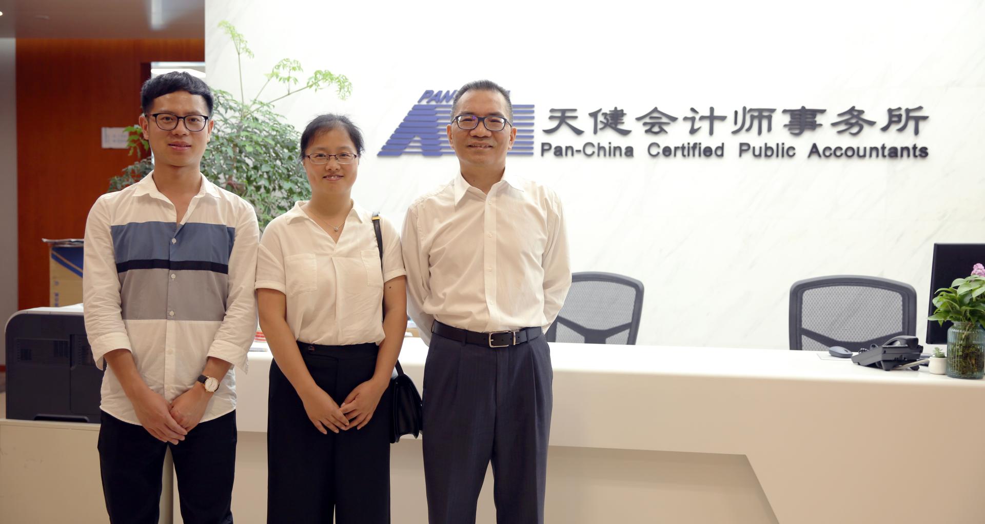 党委副书记徐丽玲、税收专业思想政治辅导员李永涛走访天健会计师事务所(管理合伙人)副总裁、学院知名校友王国海。王国海热情地接待了徐丽玲一行。