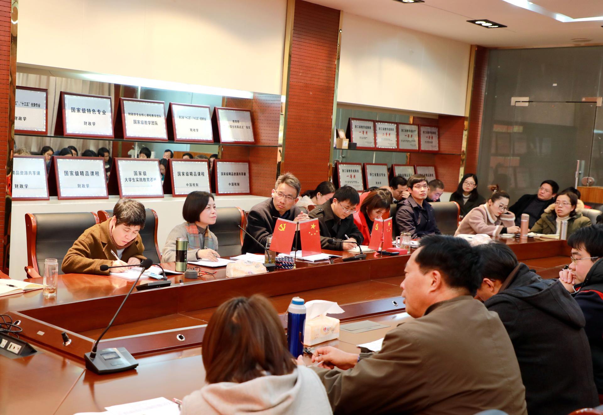 院党委书记杨春玲首先传达了李金昌书记2019年初在学校中层及以上干部会议上的讲话精神,也传达了学校安全稳定工作的相关要求,同时对接下来的双代会提案工作进行了简要布置。她强调,2019年是中华人民共和国成立70周年,也是我校建校45周年,更是学院完成学校四年目标责任制考核的最后一年,学院全体教师,要紧紧围绕李金昌书记的讲话精神,对标学院四年目标管理责任制考核任务,补齐短板,为推动学院高质量发展而继续努力。