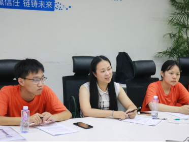 随后,鲍伟俊校友带领季陈翔老师一行人于会议室观看企业宣传片,参观企业内部工作环境,感受av大平台。鲍总监表示,区块链应用广泛,市场前景广阔,企业以区块链技术研发为核心竞争力,拥有未知却巨大的潜在价值。在未来趣链不仅会为机构提供技术解决方案,并将向运营方向发展。