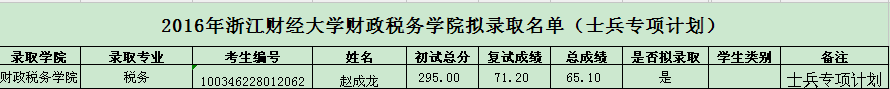 2016年av大平台 拟录取名单(士兵专项计划)