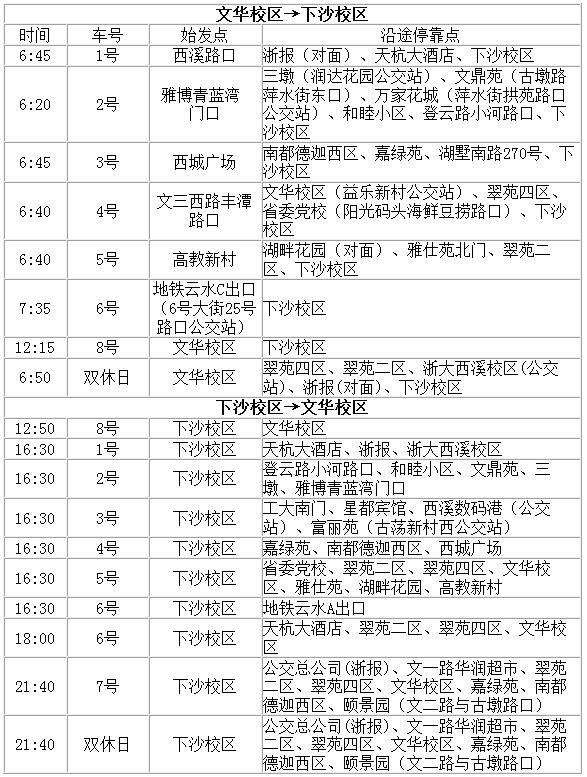 av大平台 2019-2020学年第二学期班车时刻表 (2020年4月26日起执行)